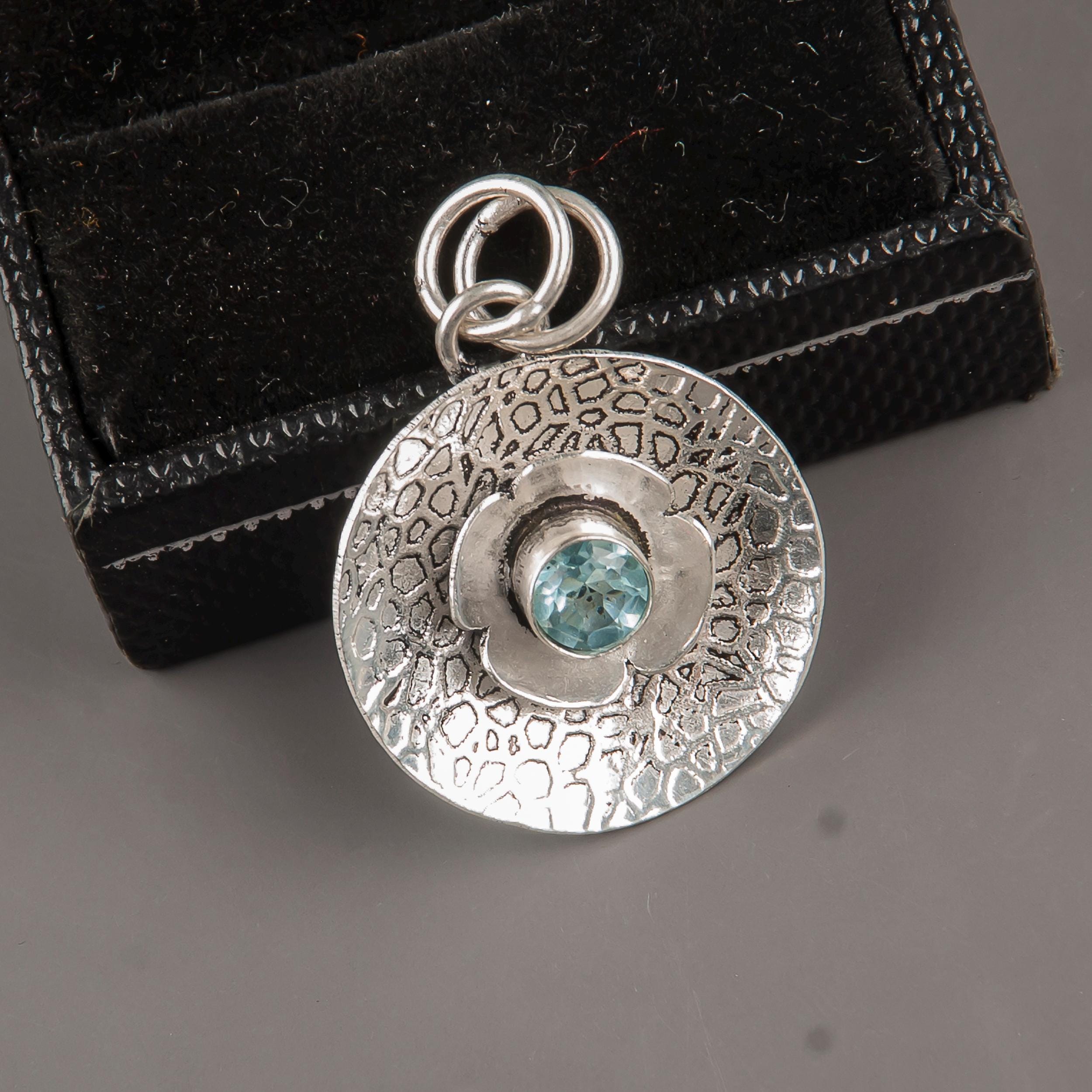 Handmade Sky Blue Topaz Pendant: 925 Sterling Silver Gemstone Jewelry