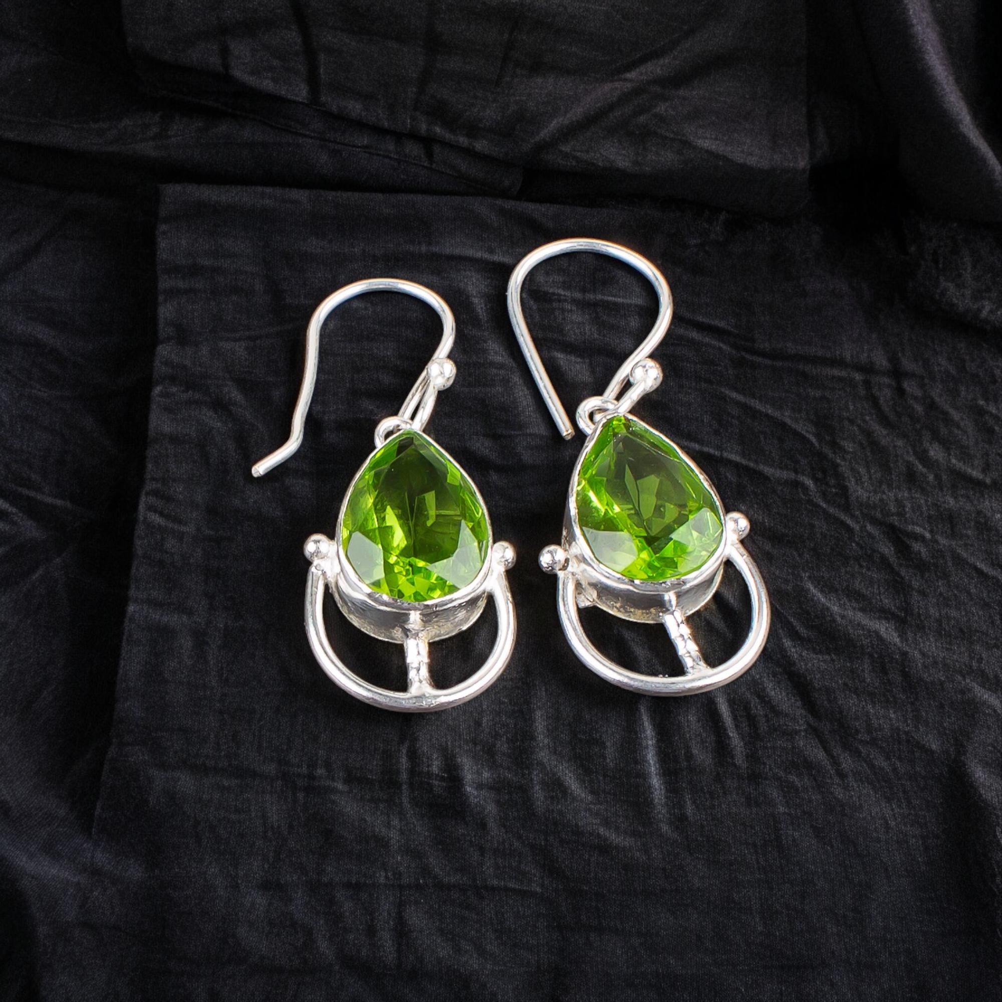 Peridot Dangle Earrings: Handmade 925 Sterling Silver Gemstone