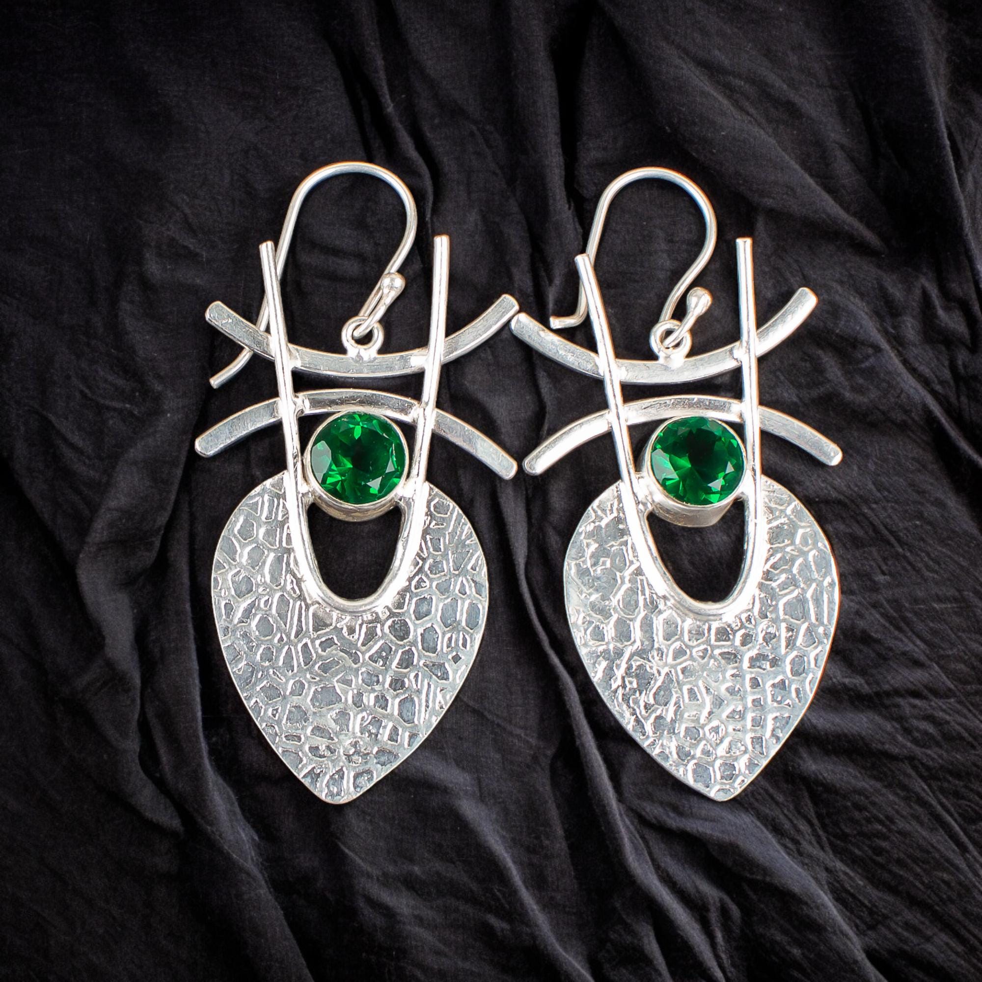 Emerald Dangle Earrings: Handmade 925 Sterling Silver Gemstone