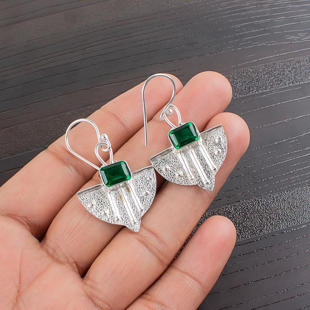 Emerald Earrings Emerald 925 Sterling Silver Gemstone Earrings Handmade Emerald Earrings Gift For Women