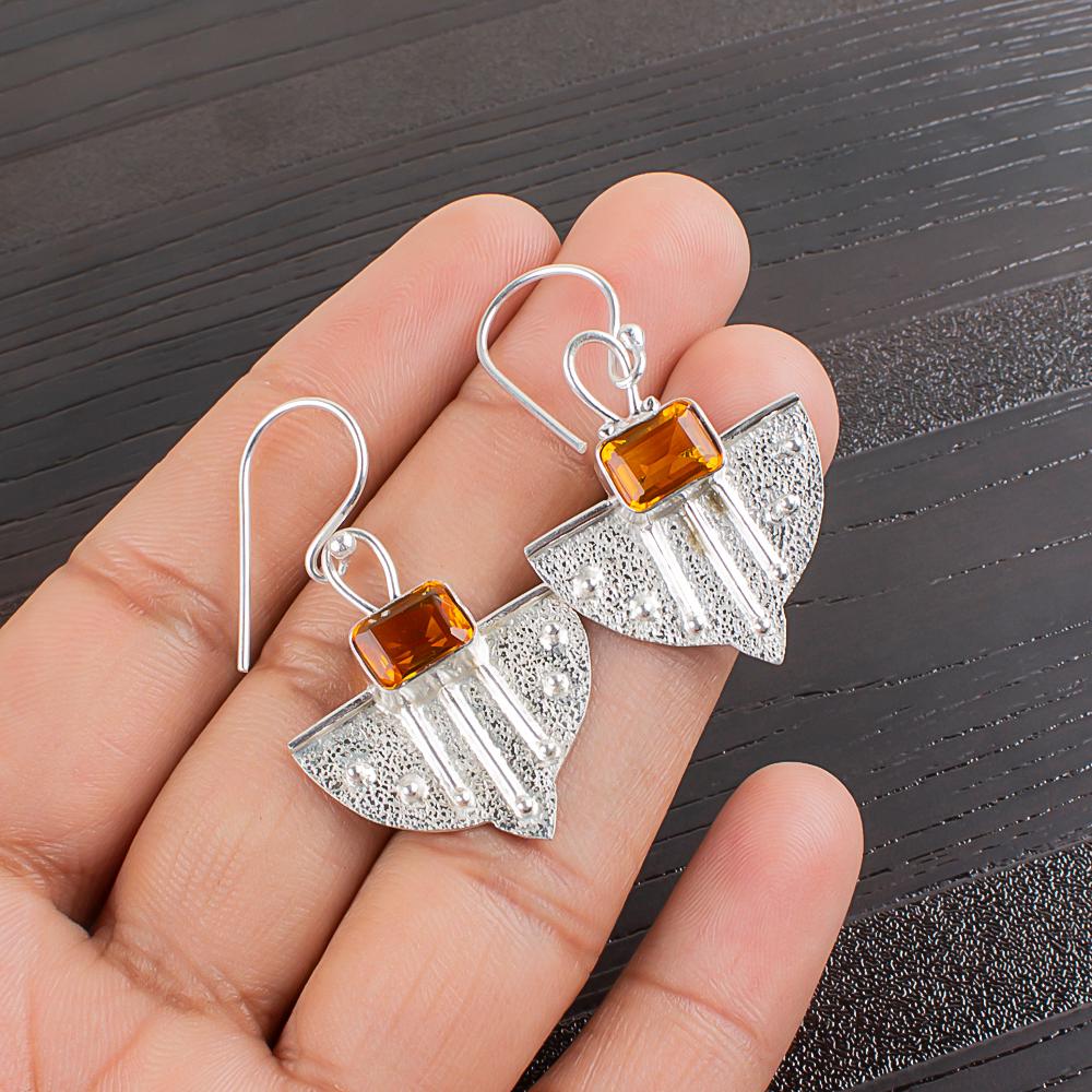 Citrine Dangle Earrings: Handmade 925 Sterling Silver Gemstone