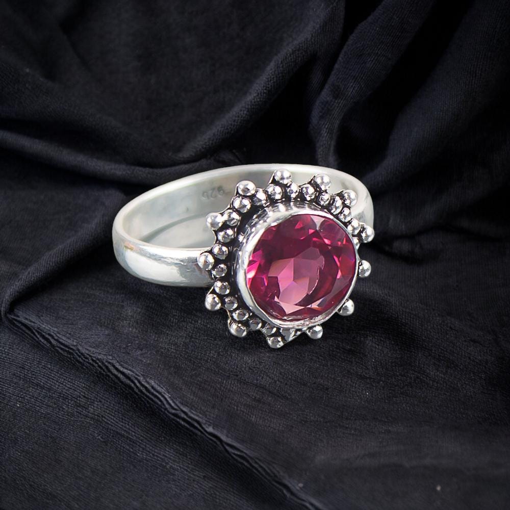 Pink Tourmaline Ring Pink Tourmaline 925 Sterling Silver Ring Handmade Garnet Gemstone Jewelry Pink Color Statement Ring Everyday Ring