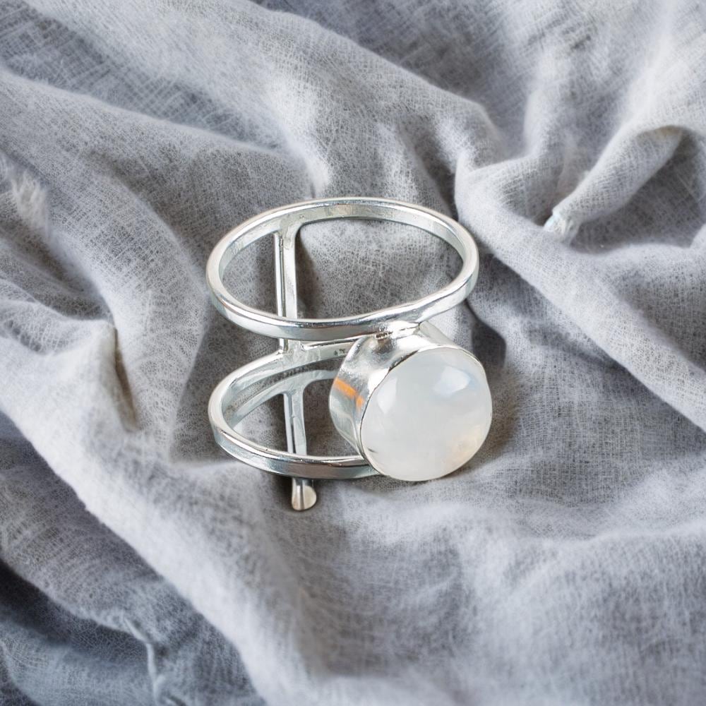 Handmade Rainbow Moonstone Ring: 925 Sterling Silver White Gemstone Jewelry
