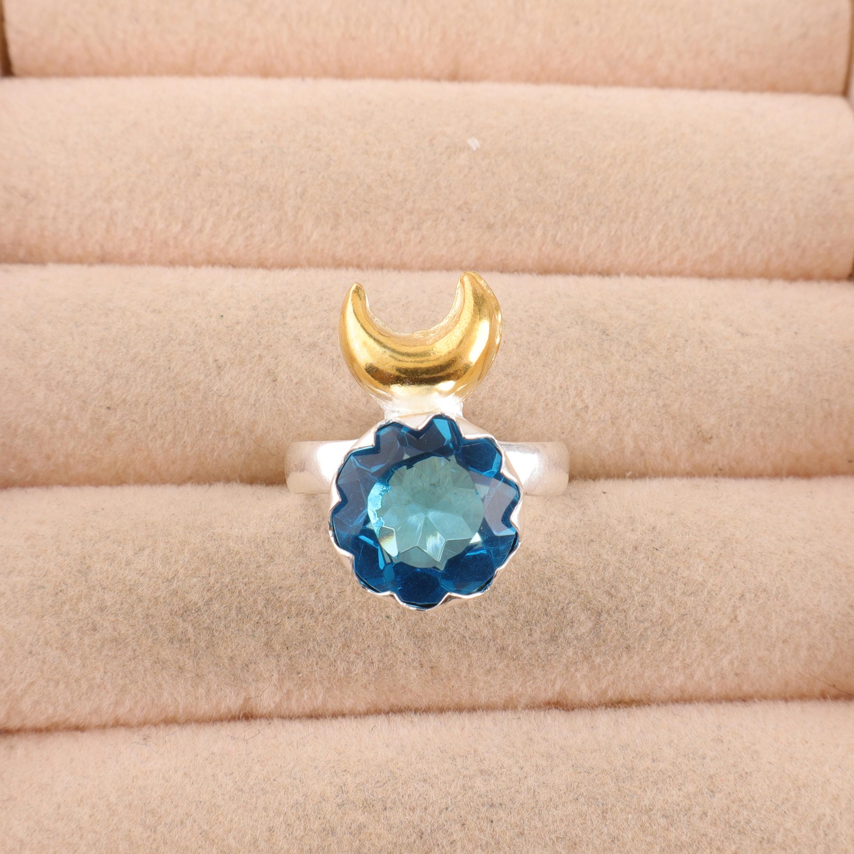 Swiss Blue Topaz Ring Swiss Blue Topaz 925 Sterling Silver Ring Handmade Swiss Blue Topaz Gemstone Jewelry Blue Color Statement Ring Everyday Ring