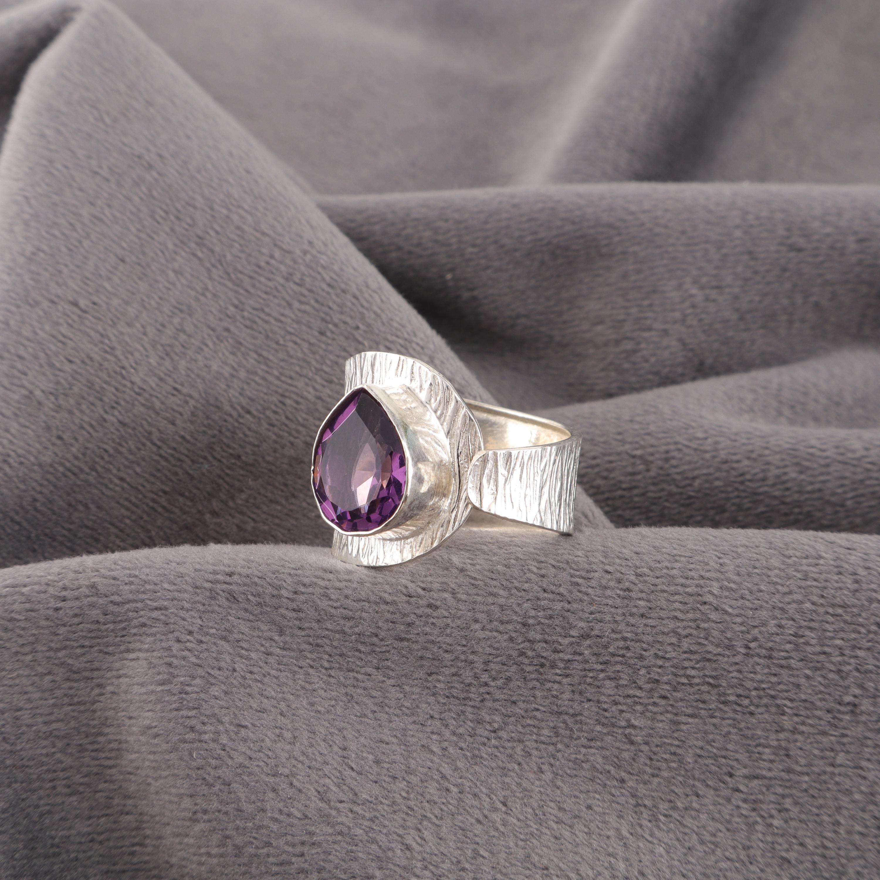 Handmade Amethyst Ring: 925 Sterling Silver Purple Gemstone Jewelry