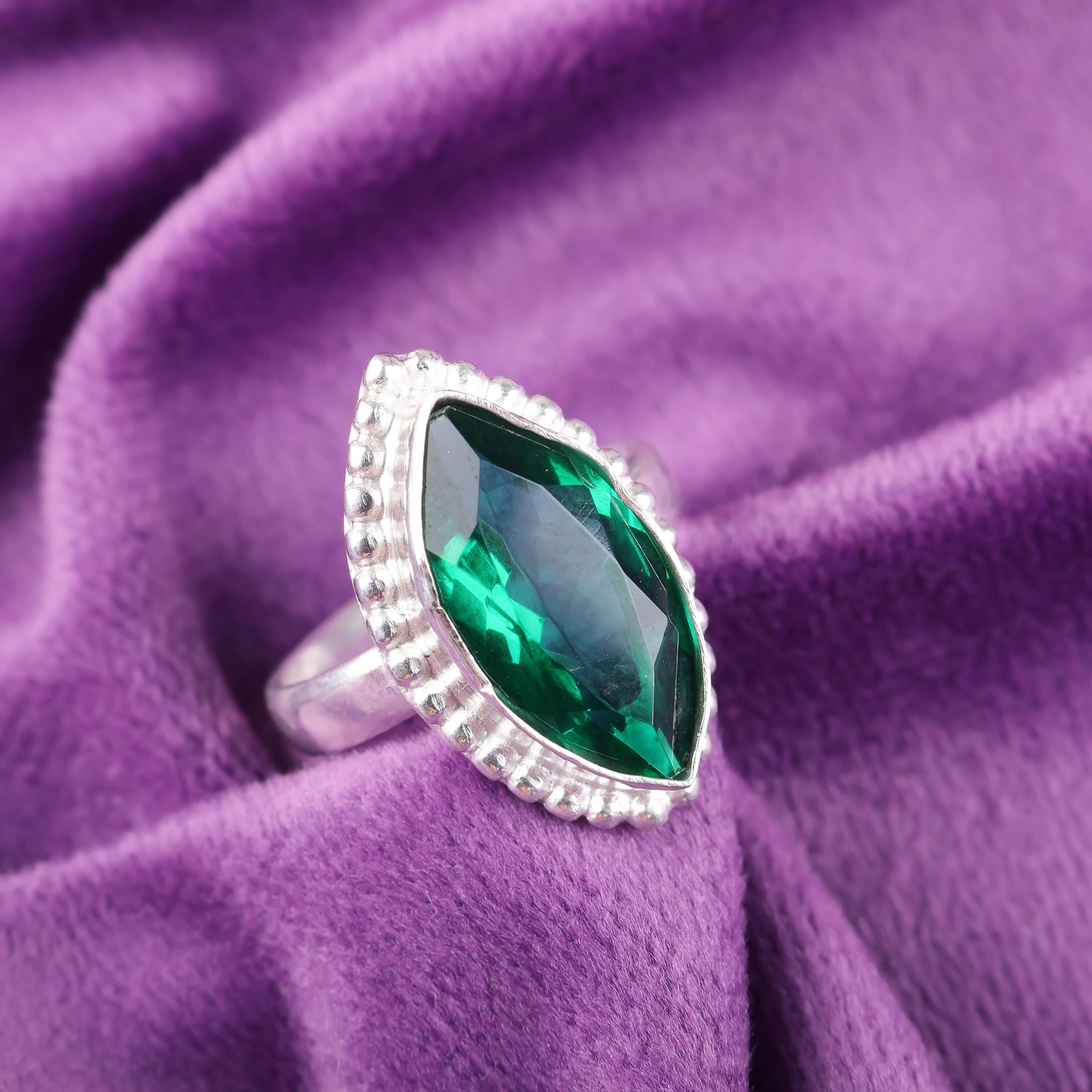 Handmade Emerald Ring: 925 Sterling Silver Green Gemstone Jewelry