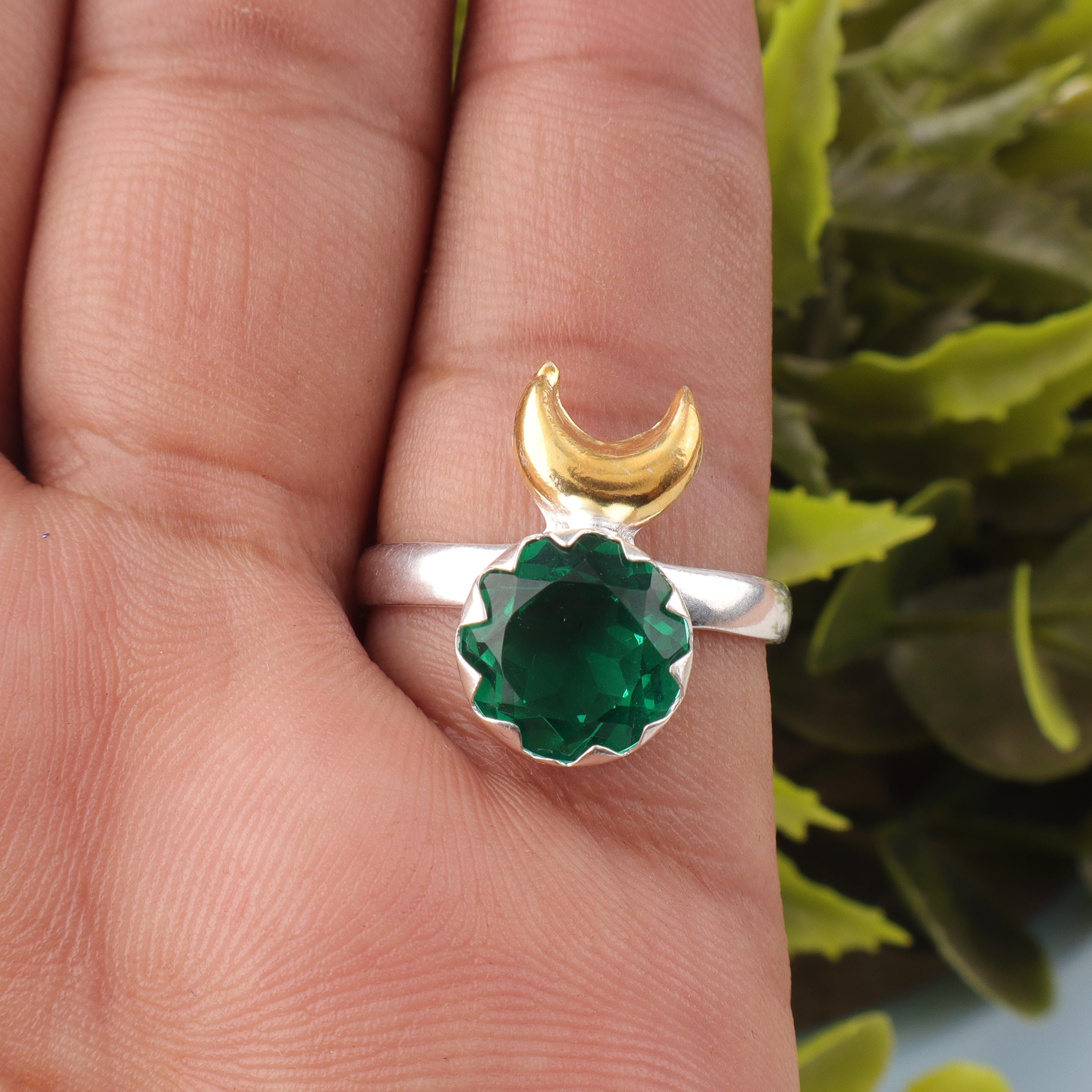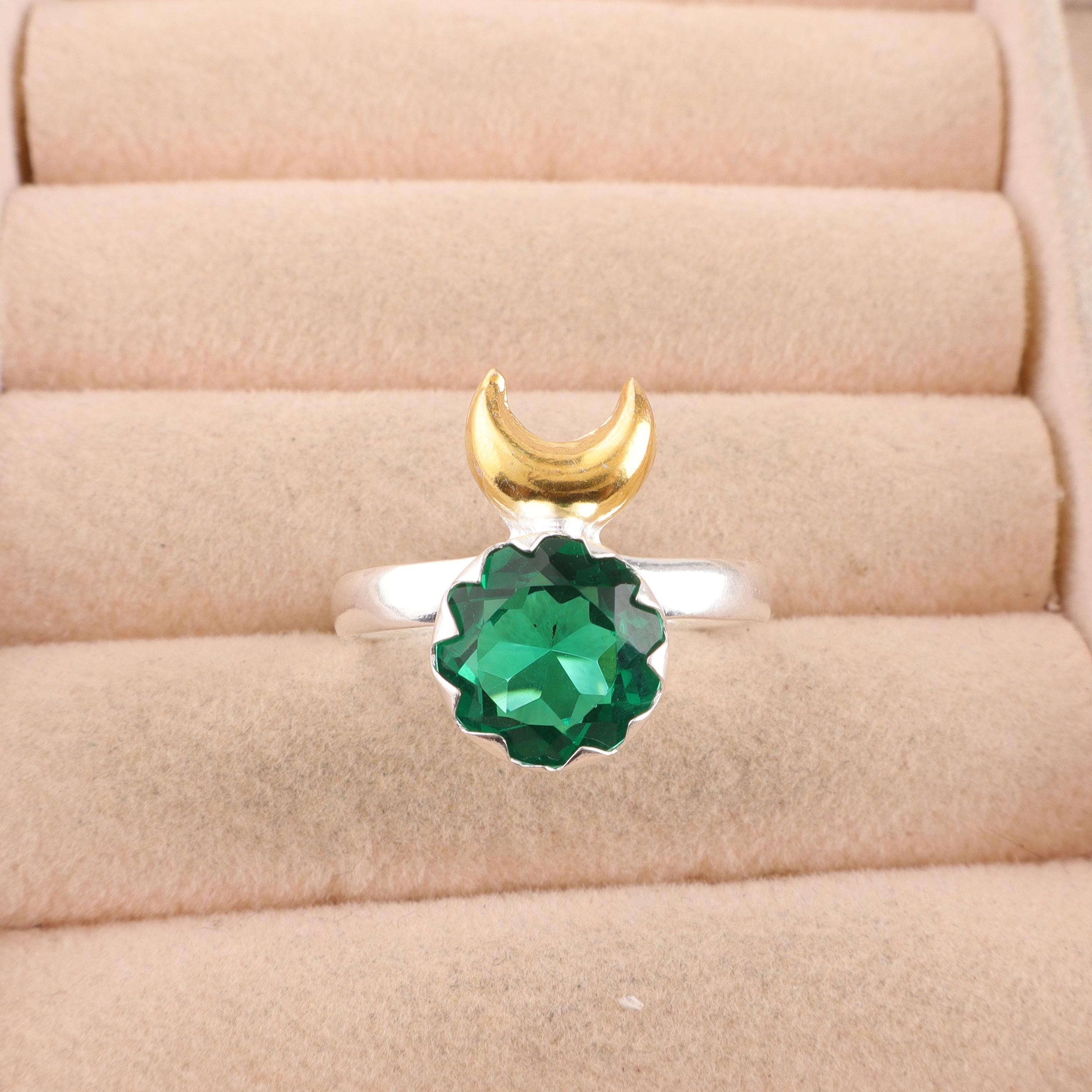 Green Emerald Ring Green Emerald 925 Sterling Silver Ring Handmade Green Emerald Gemstone Jewelry Green Color Statement Ring Everyday Ring