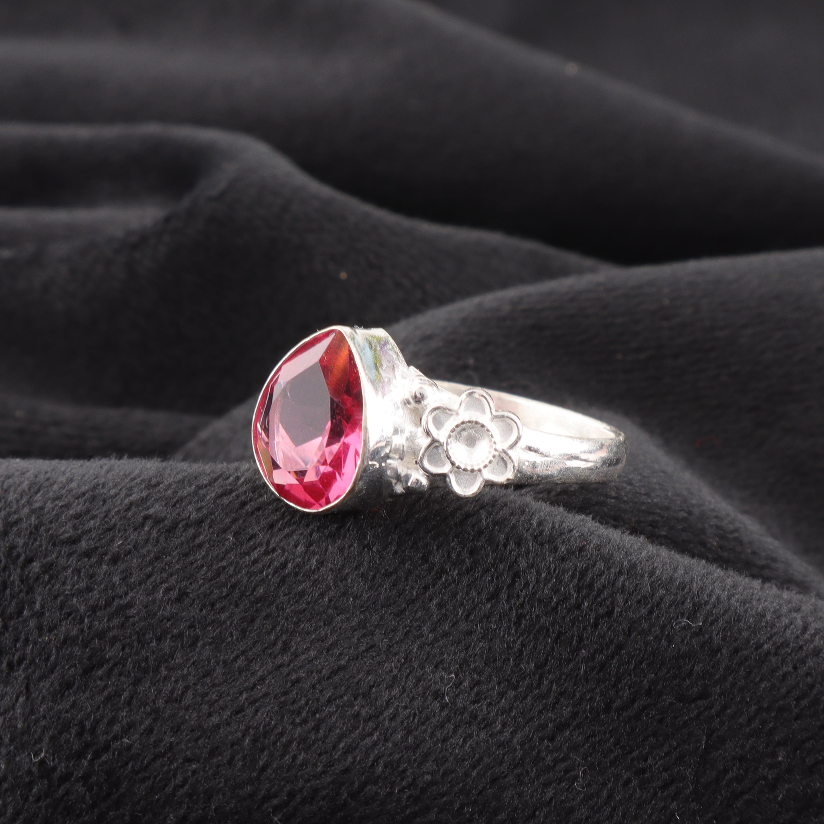Handmade Pink Tourmaline Ring: 925 Sterling Silver Pink Gemstone Jewelry
