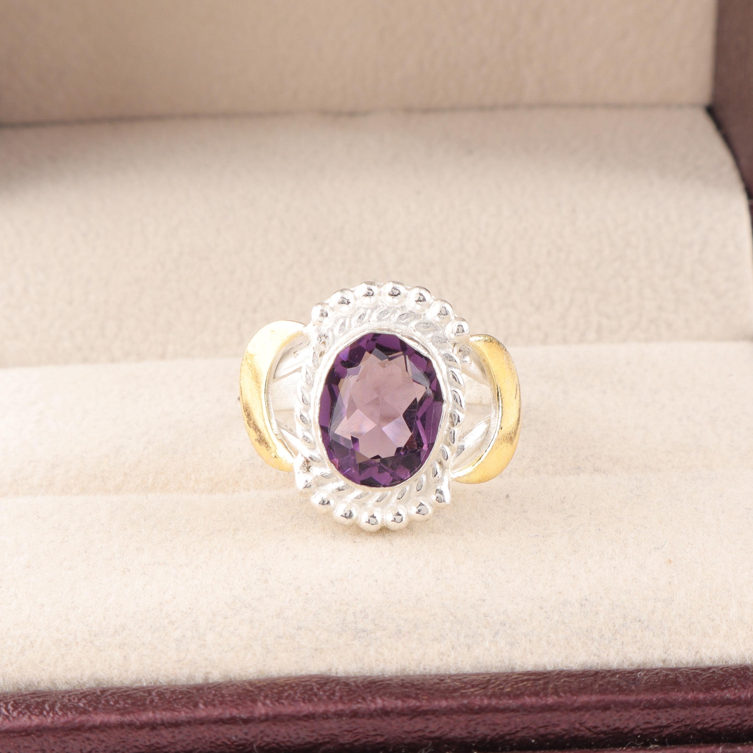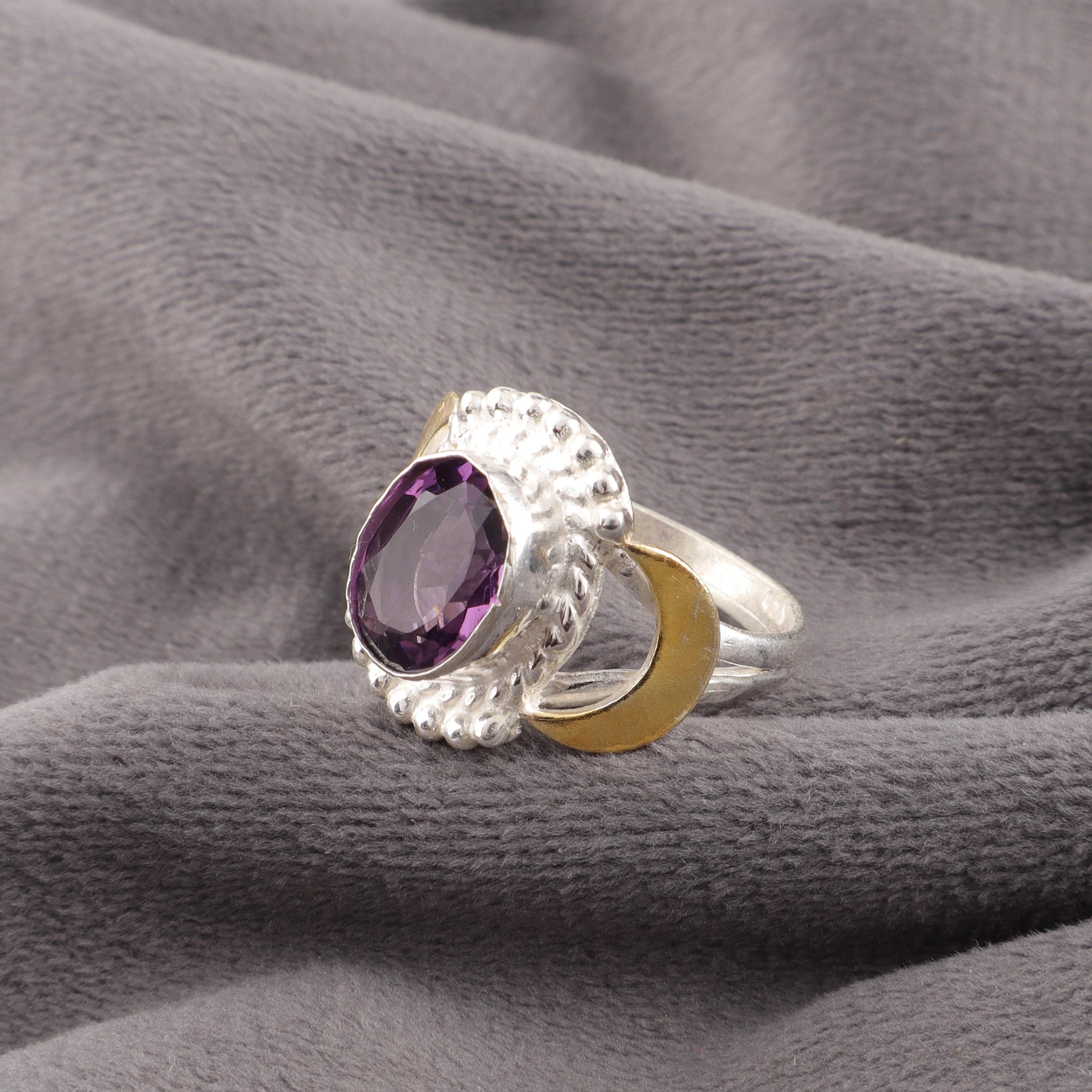 Handmade Amethyst Ring: 925 Sterling Silver Purple Gemstone Jewelry