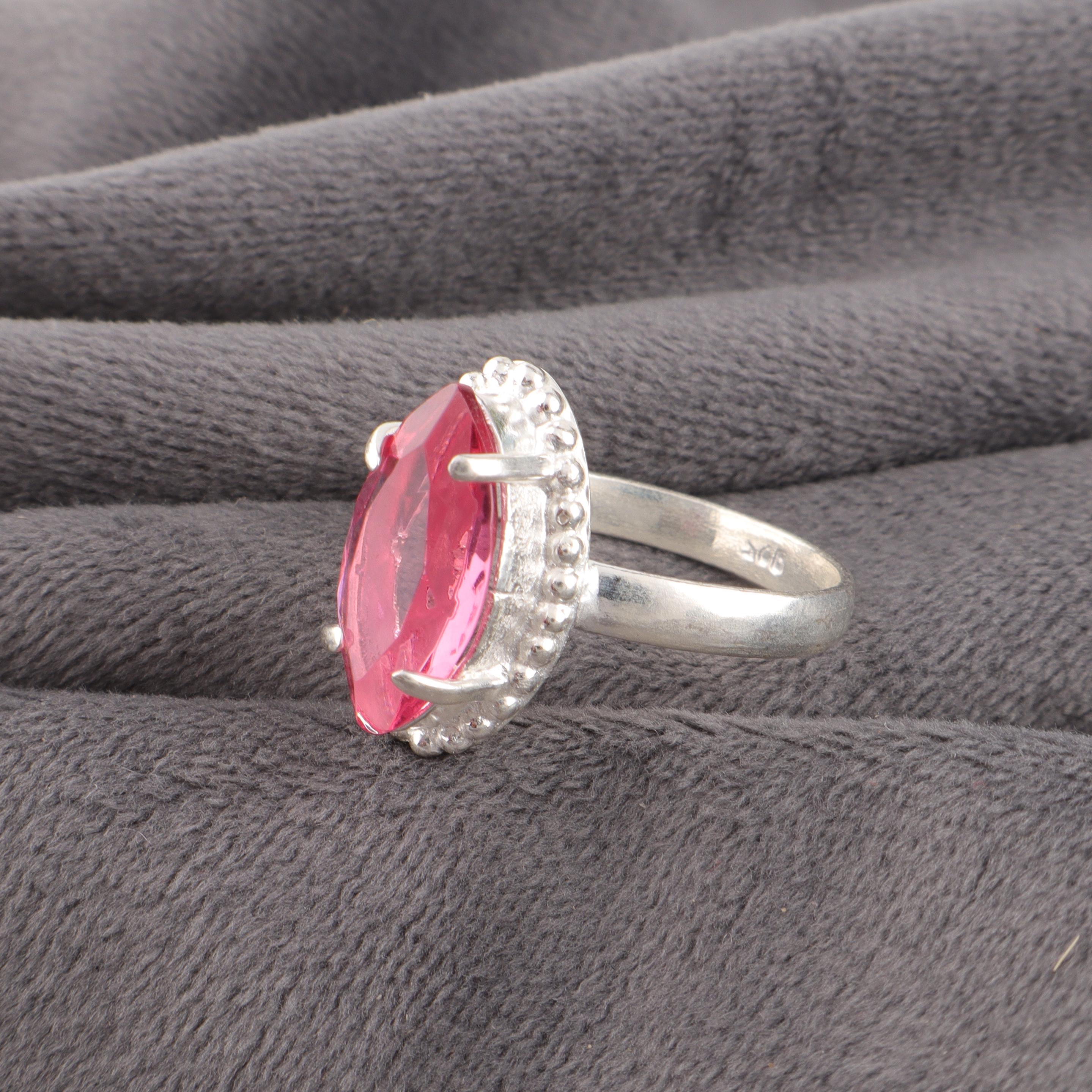 Handmade Pink Tourmaline Ring: 925 Sterling Silver Pink Gemstone Jewelry