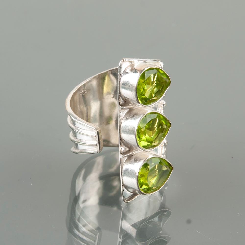 Handmade Peridot Ring: 925 Sterling Silver Green Gemstone Jewelry