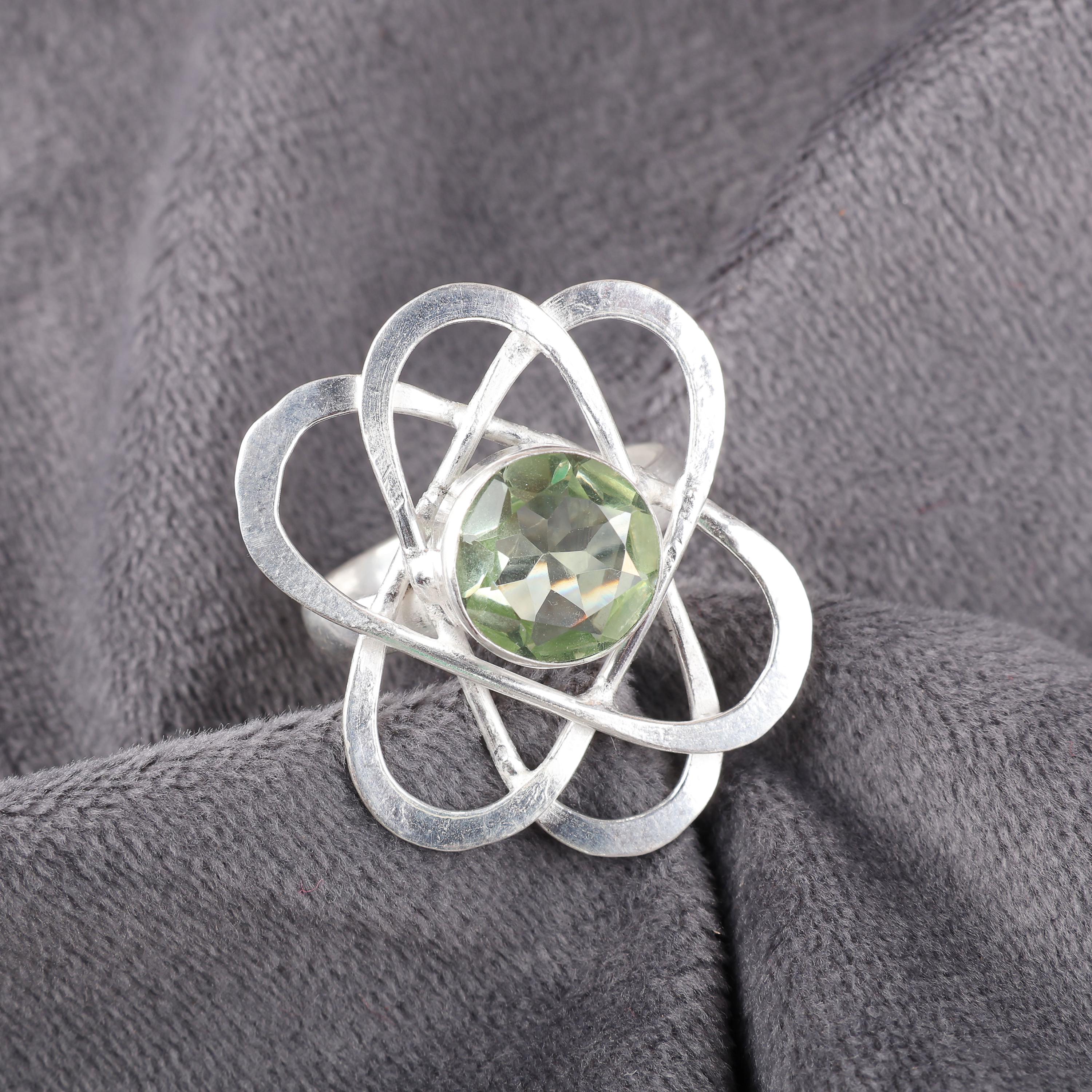 Handmade Green Amethyst Ring: 925 Sterling Silver Green Gemstone Jewelry