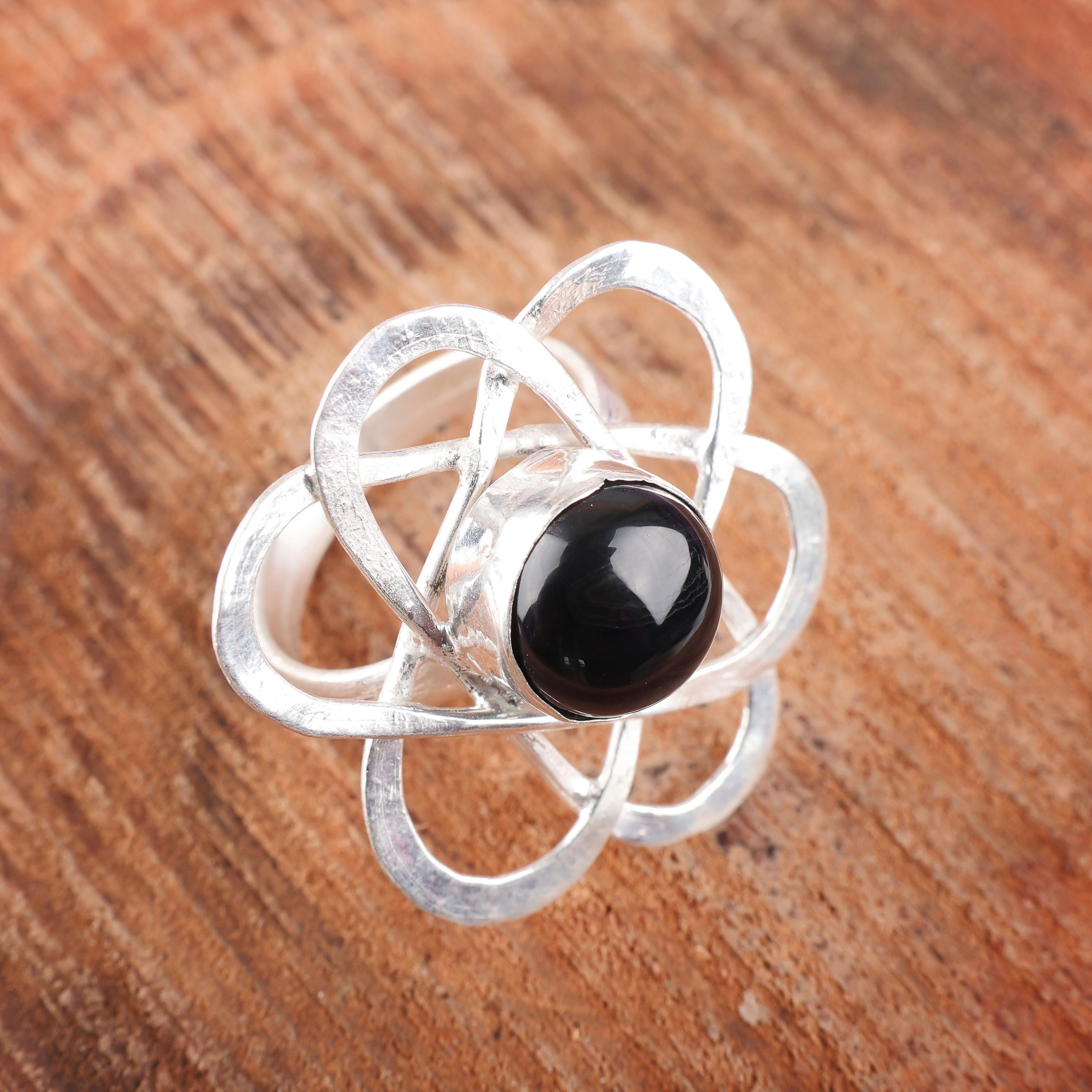 Handmade Black Onyx Cab Ring: 925 Sterling Silver Black Gemstone Jewelry