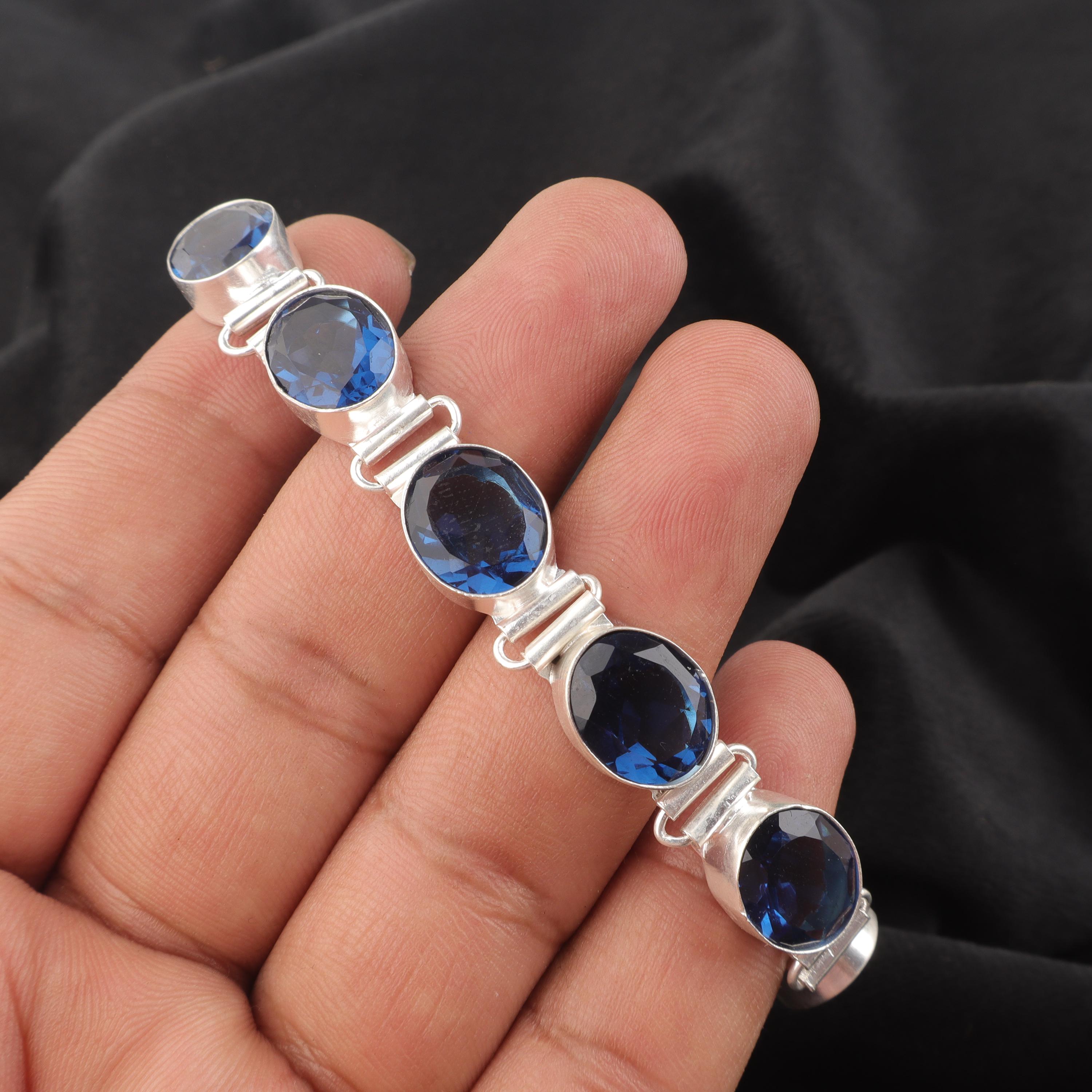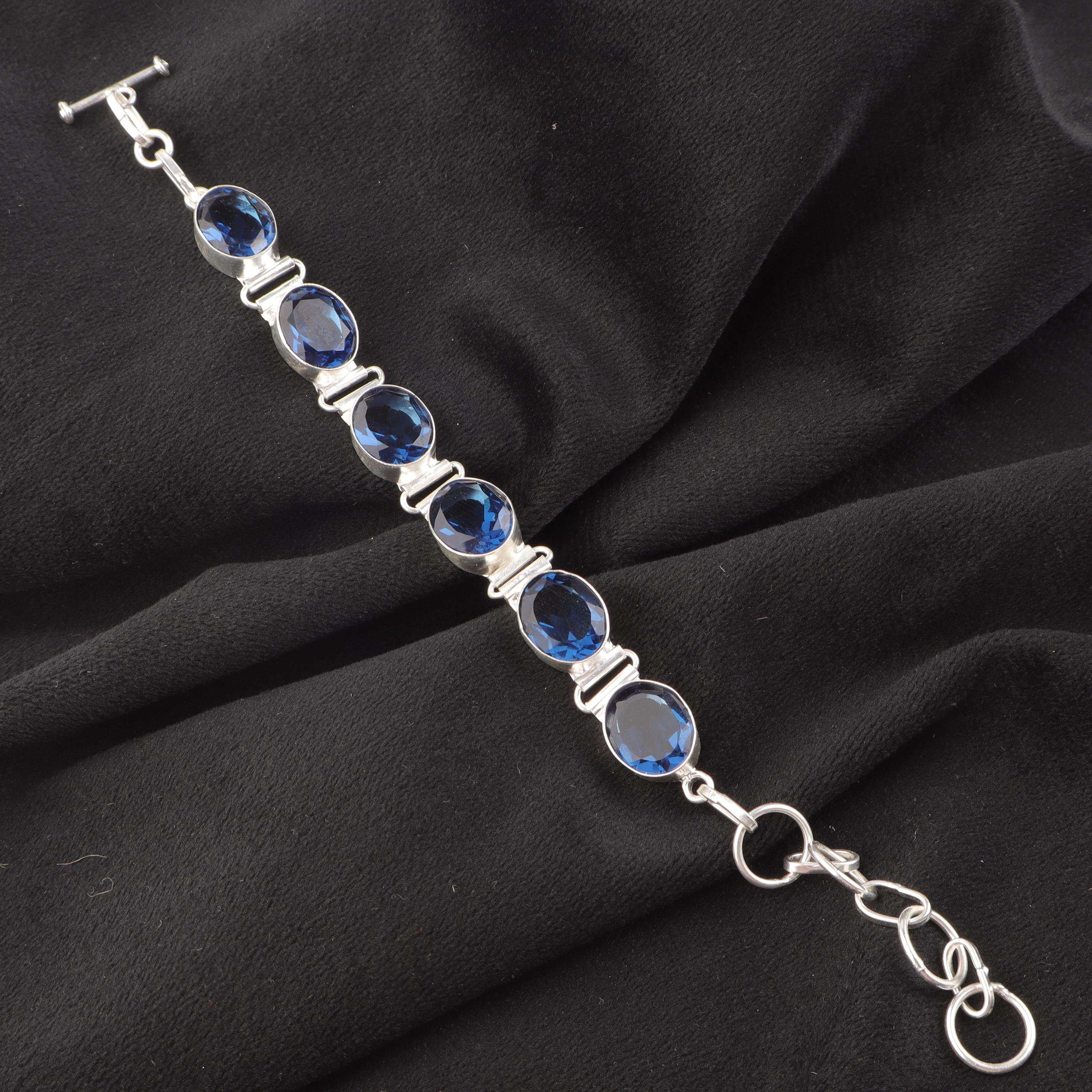 Beautifully Made London Blue Topaz Gemstone 925 Sterling Silver Bracelet