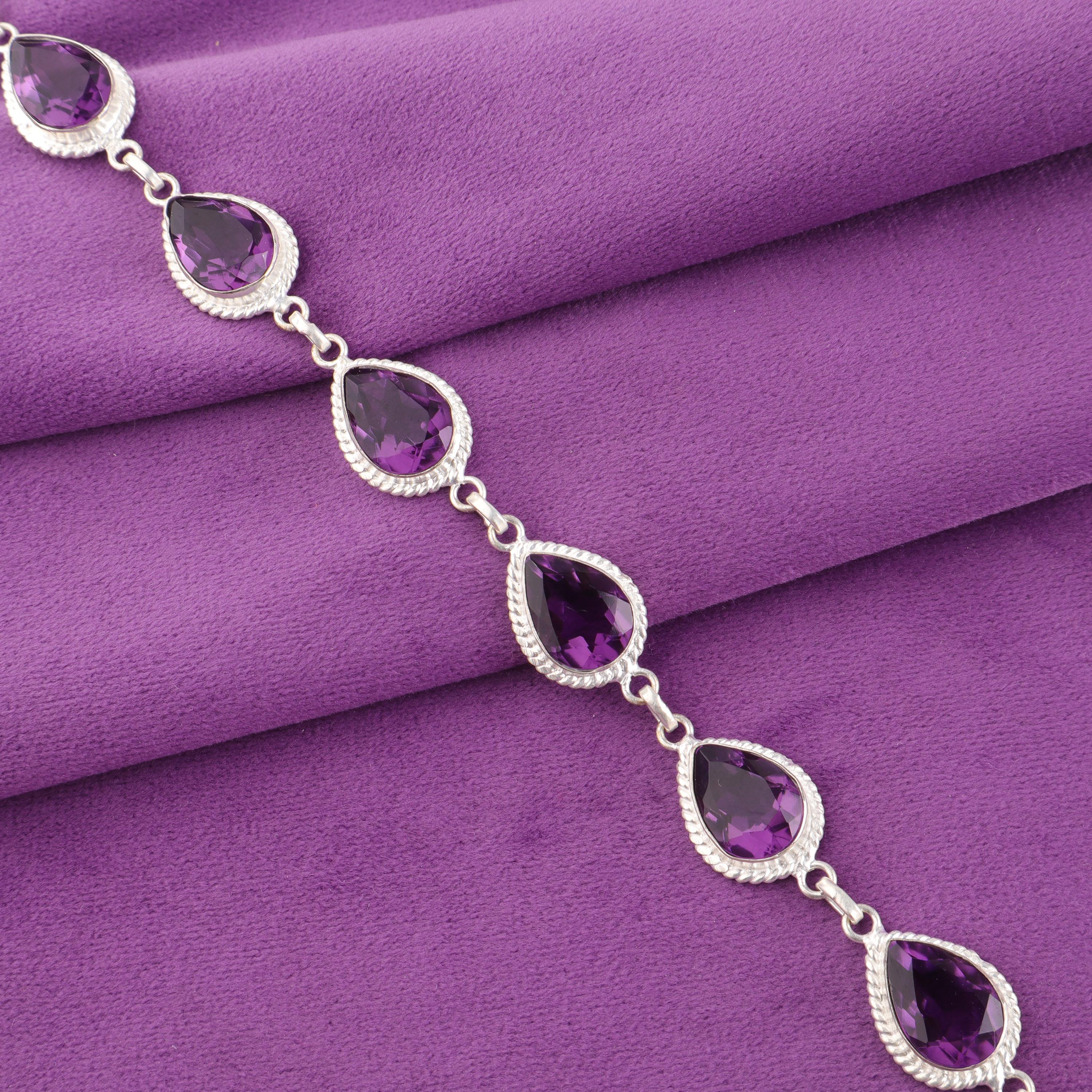 Beautifully Made Amethyst Gemstone 925 Sterling Silver Bracelet