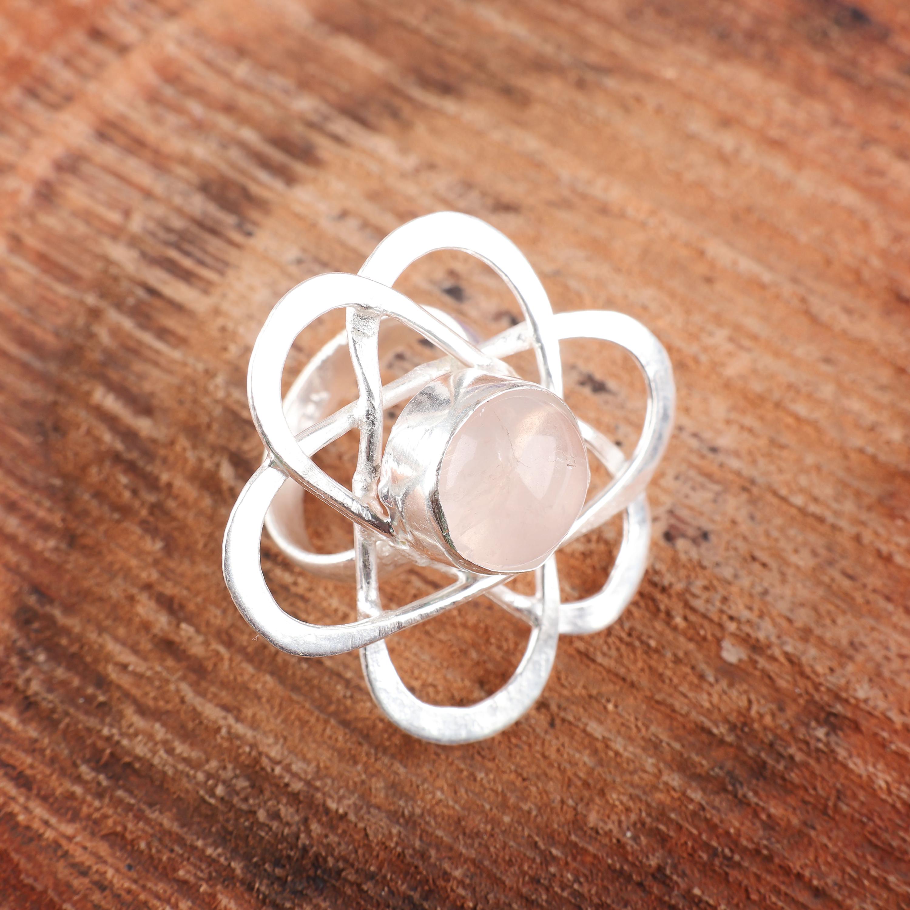 Handmade Rose Quartz Ring: 925 Sterling Silver Pink Gemstone Jewelry