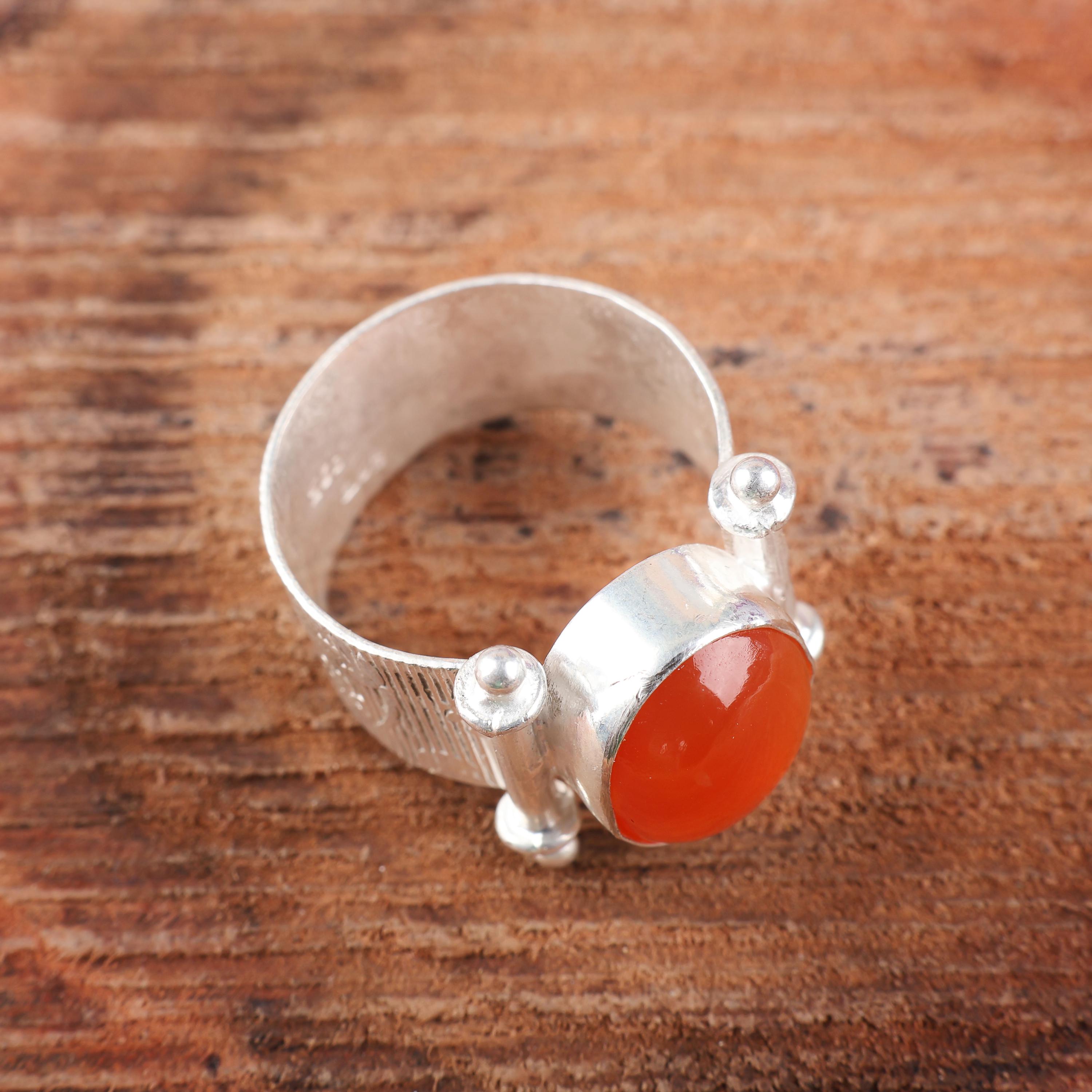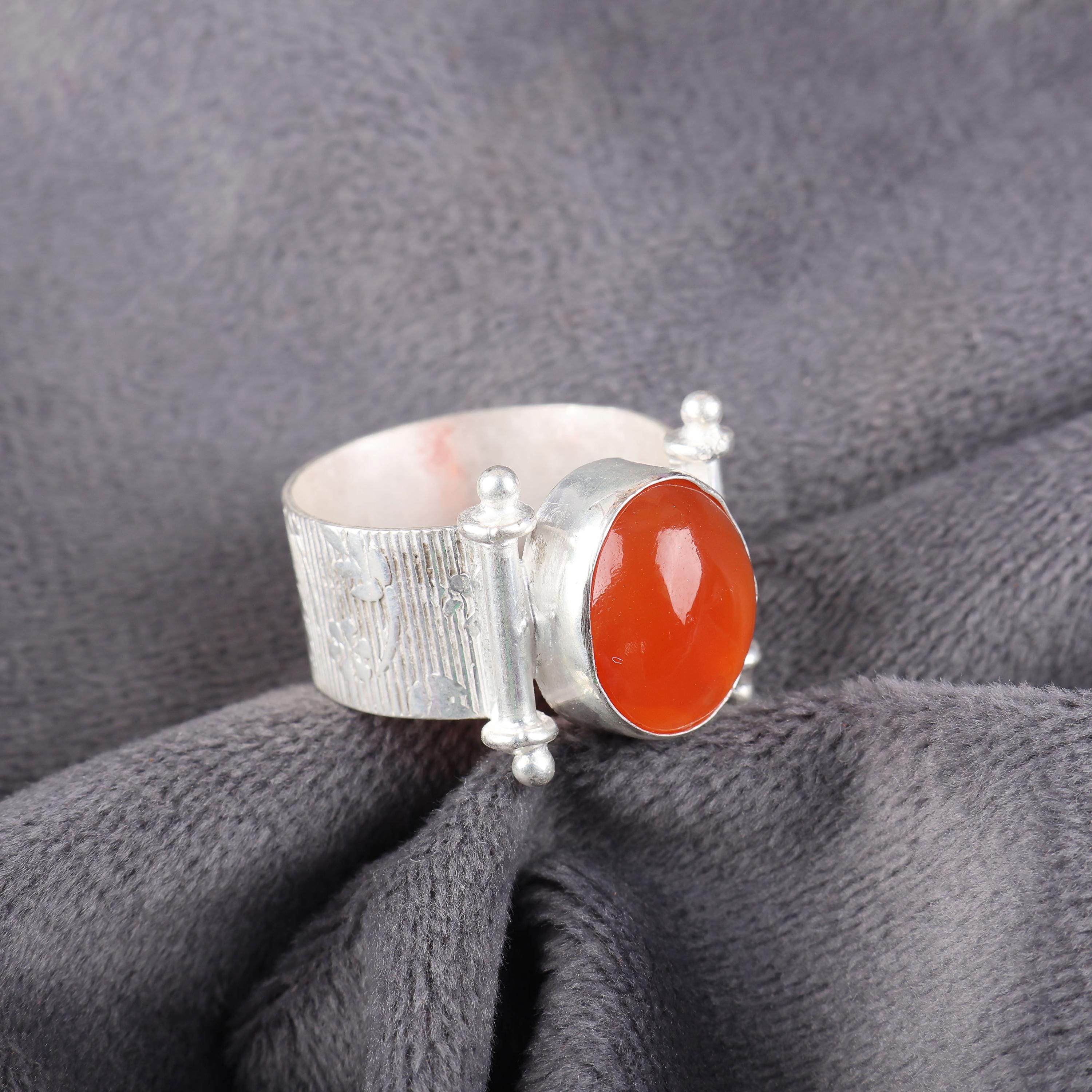 Handmade Carnelian Ring: 925 Sterling Silver Orange Gemstone Jewelry