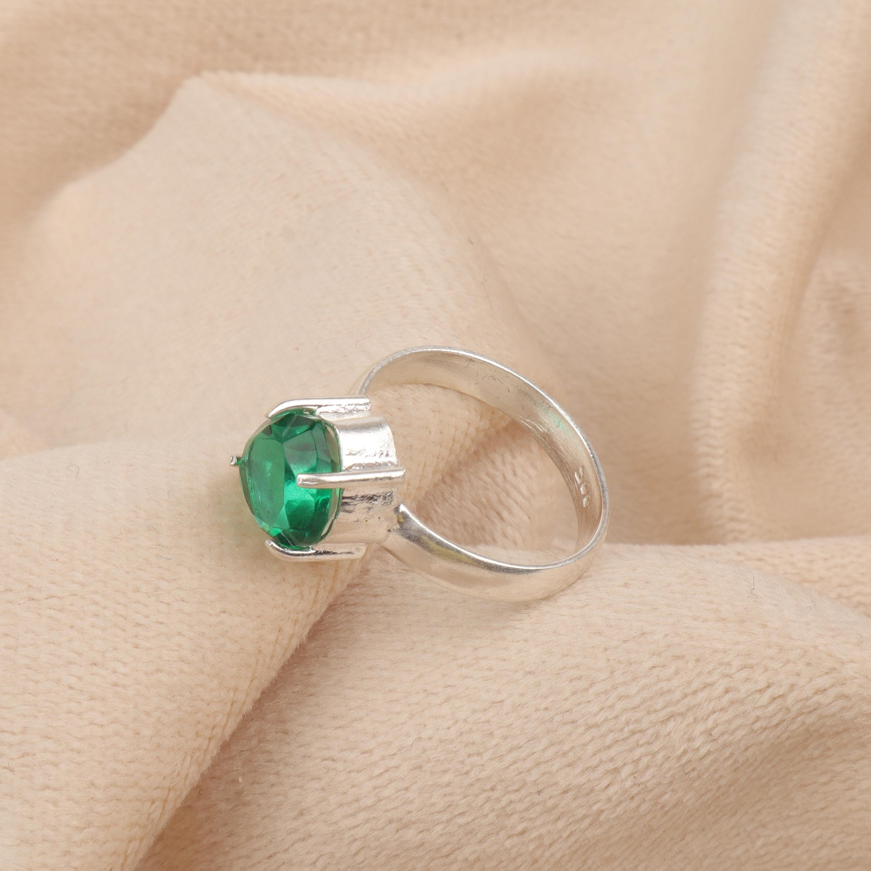 Handmade Emerald Ring: 925 Sterling Silver Green Gemstone Jewelry