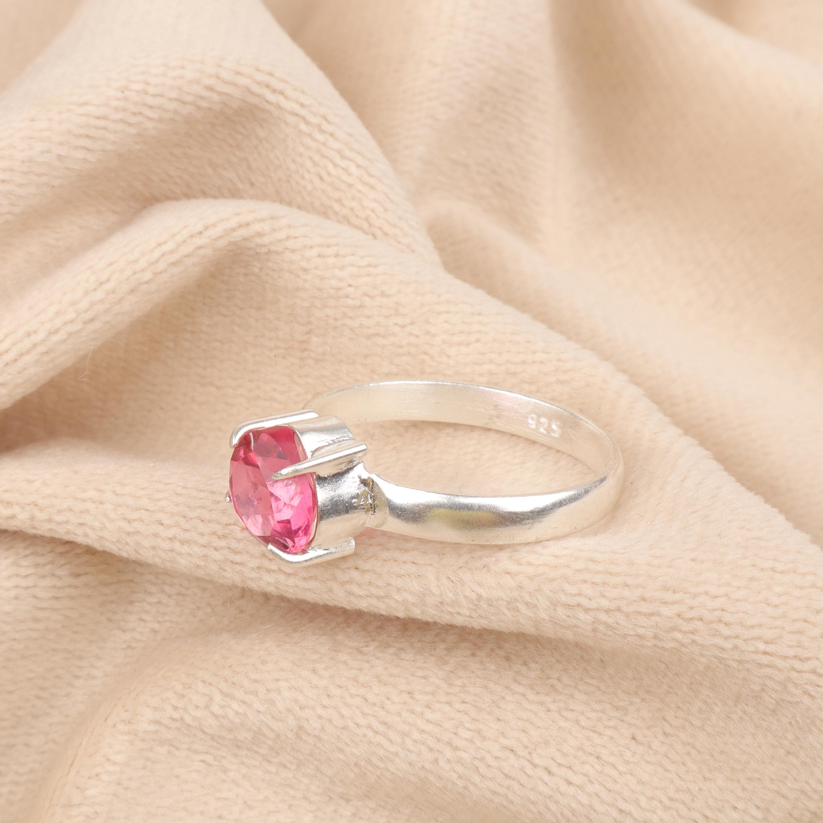 Handmade Pink Tourmaline Ring: 925 Sterling Silver Pink Gemstone Jewelry