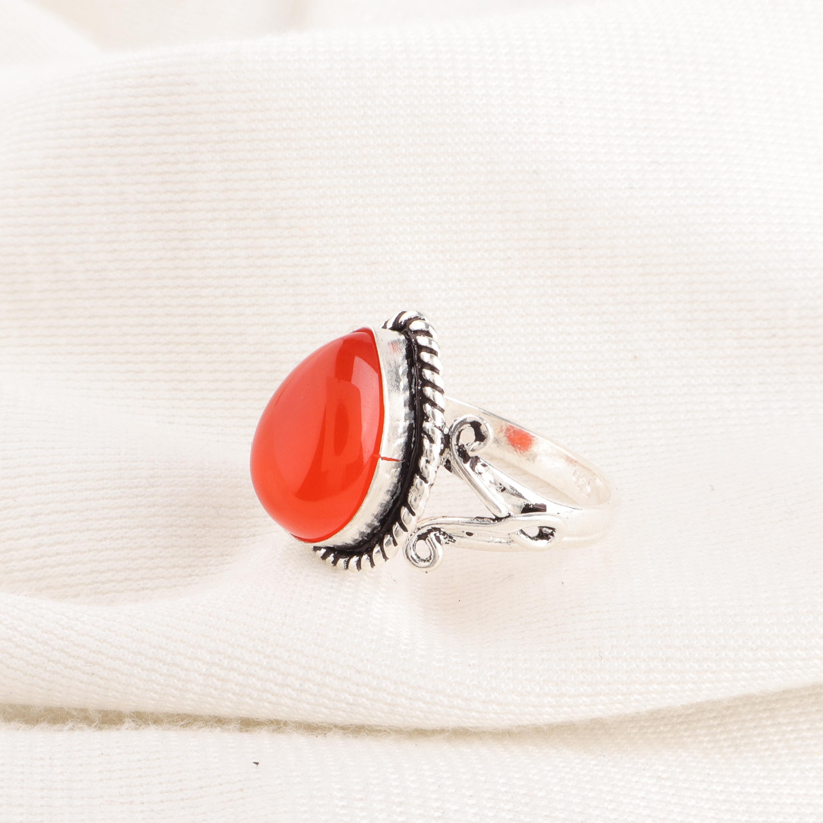 Handmade Carnelian Ring: 925 Sterling Silver Orange Gemstone Jewelry