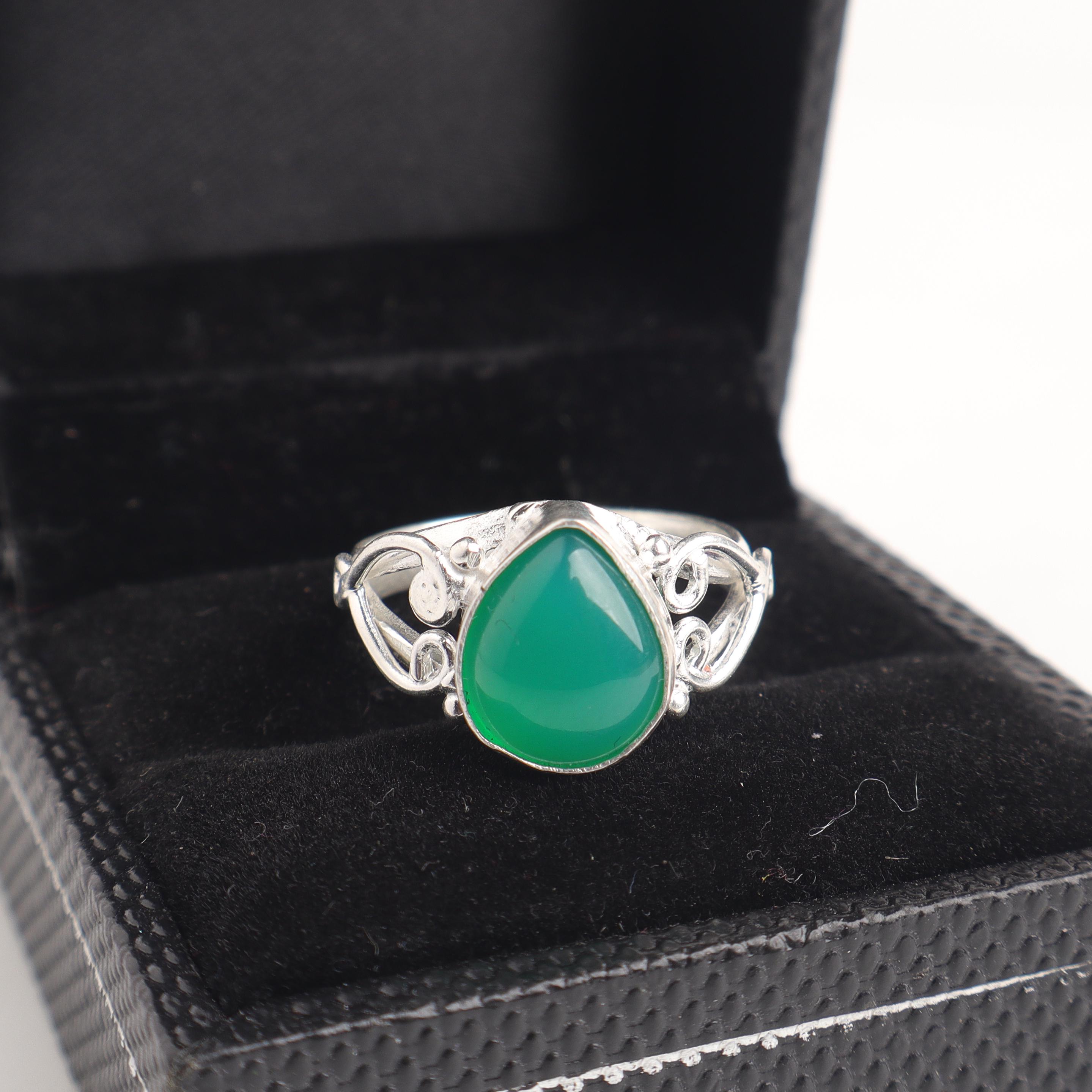 Green Onyx Ring Green Onyx 925 Sterling Silver Ring Handmade Green Onyx Gemstone Jewelry Green Color Statement Ring Everyday Ring