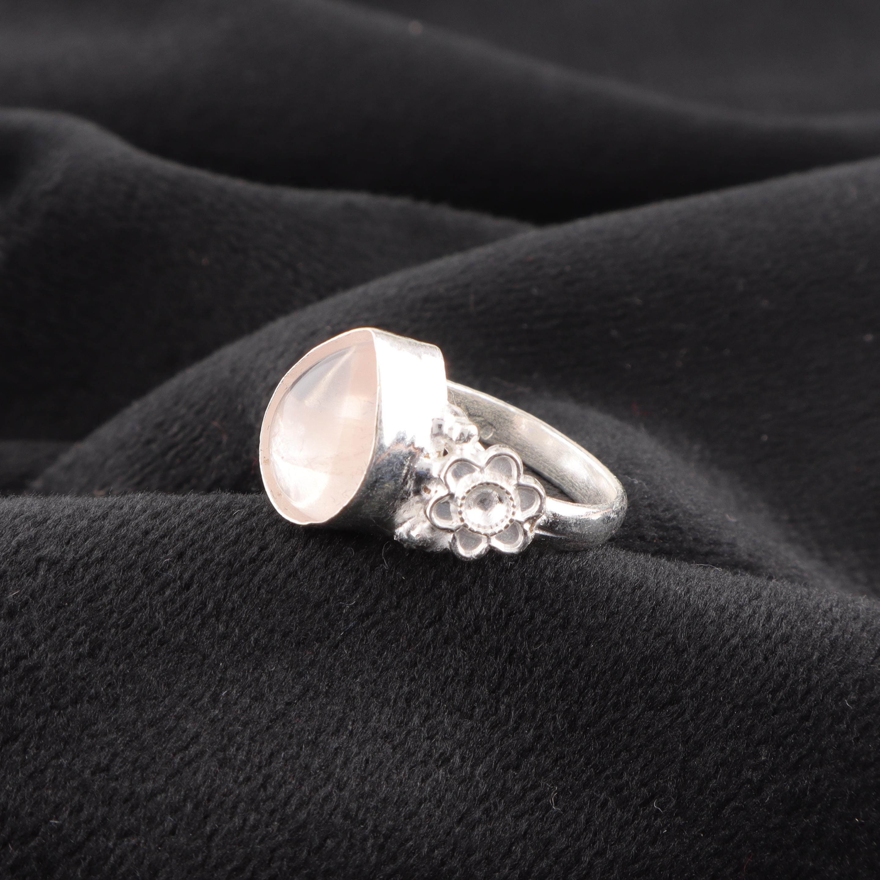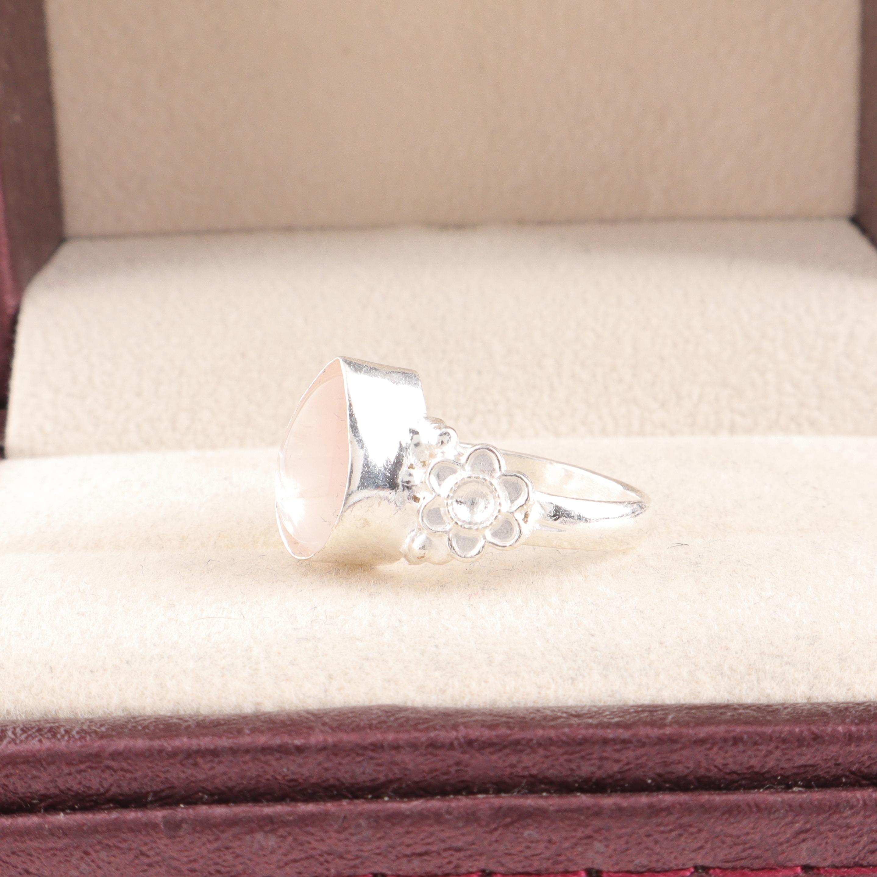 Handmade Rose Quartz Ring: 925 Sterling Silver Pink Gemstone Jewelry