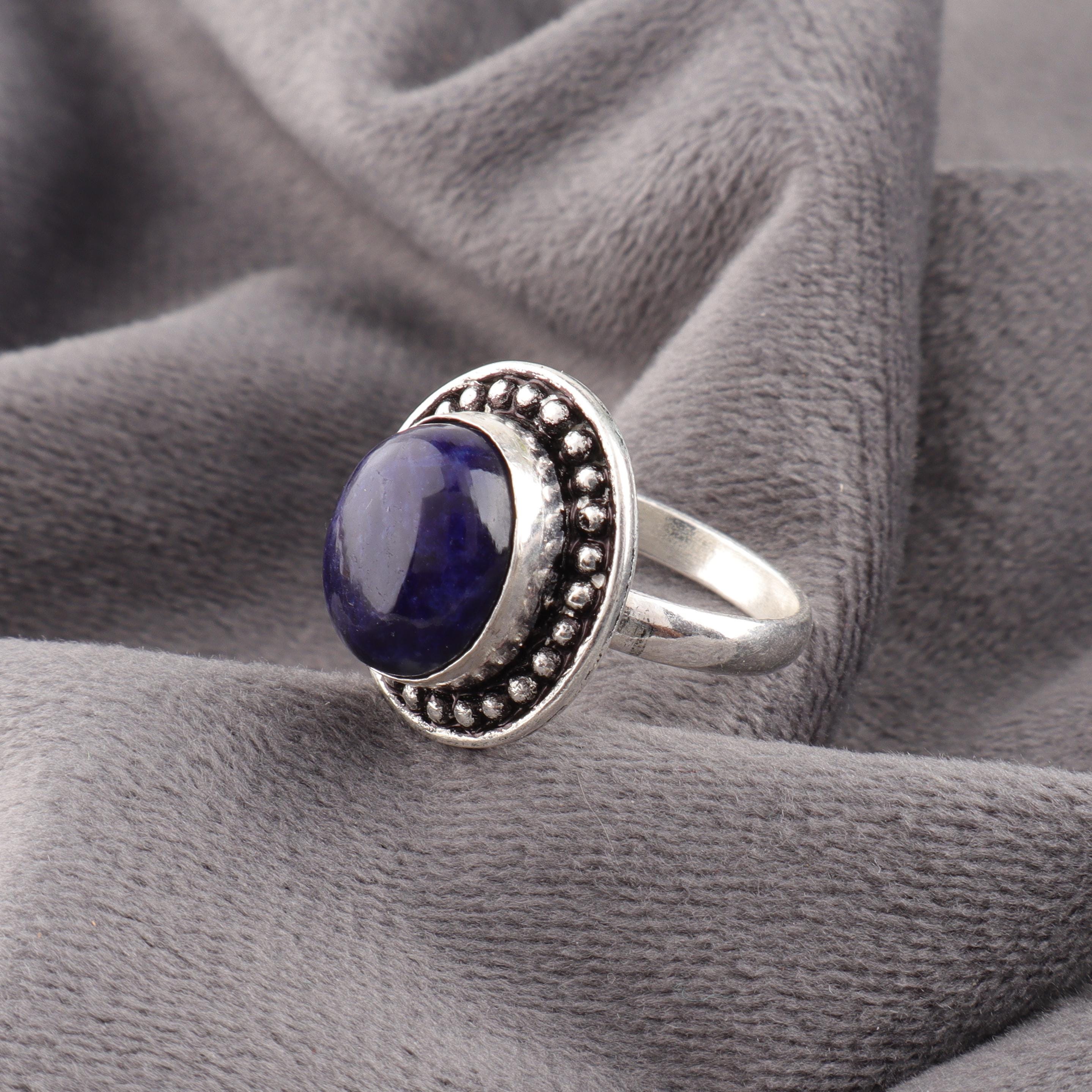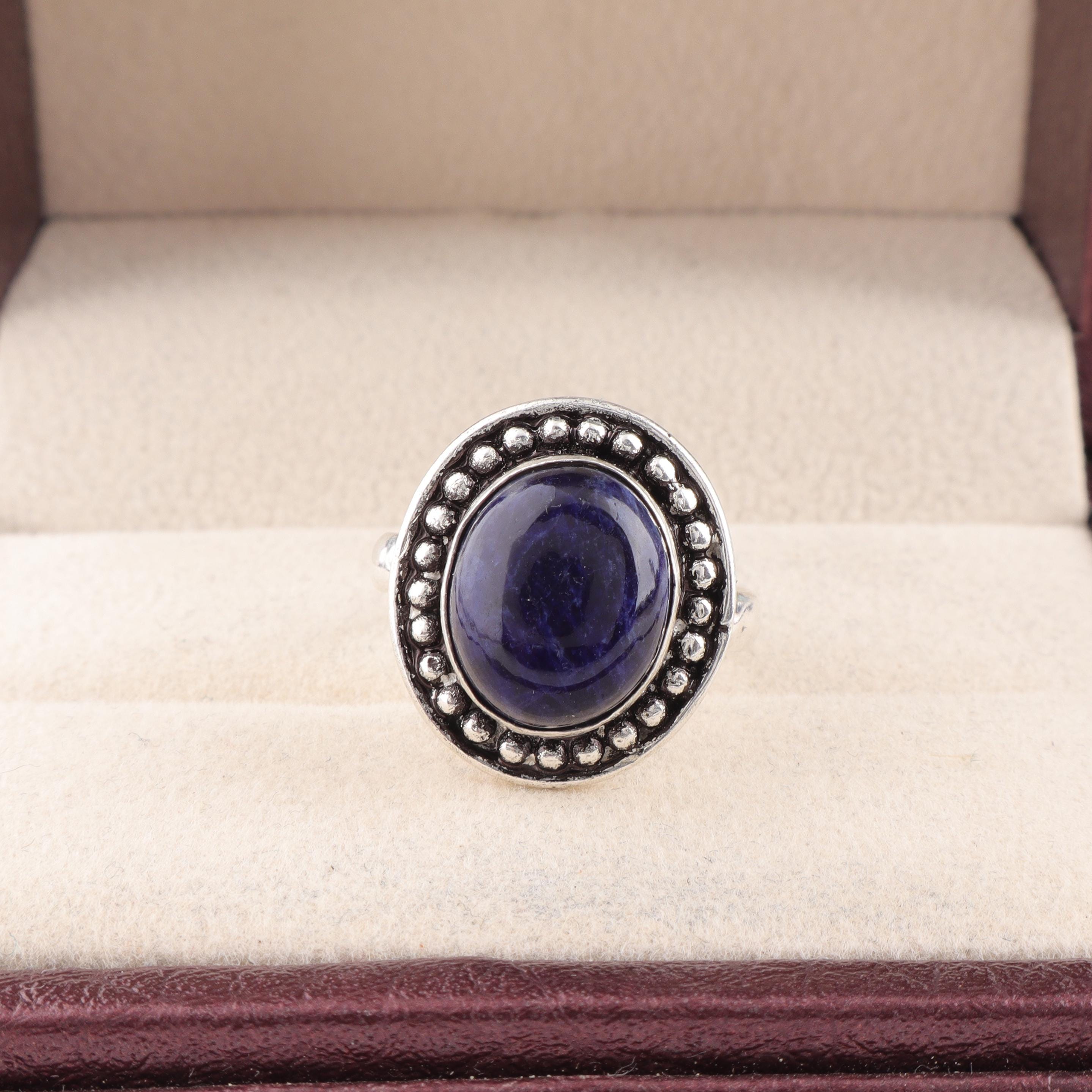 Handmade Sodalite Ring: 925 Sterling Silver Fire Gemstone Jewelry