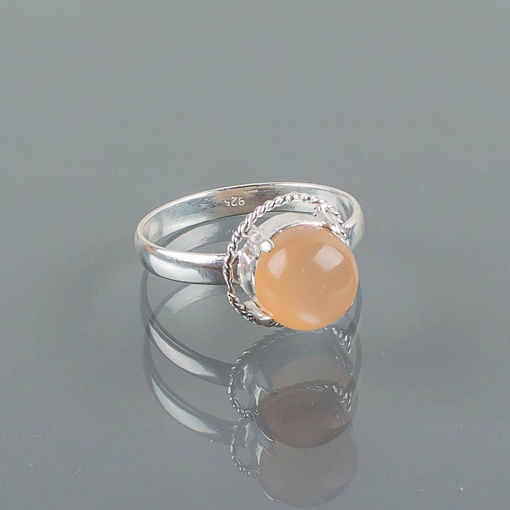 Handmade Peach Moonstone Ring: 925 Sterling Silver White Gemstone Jewelry