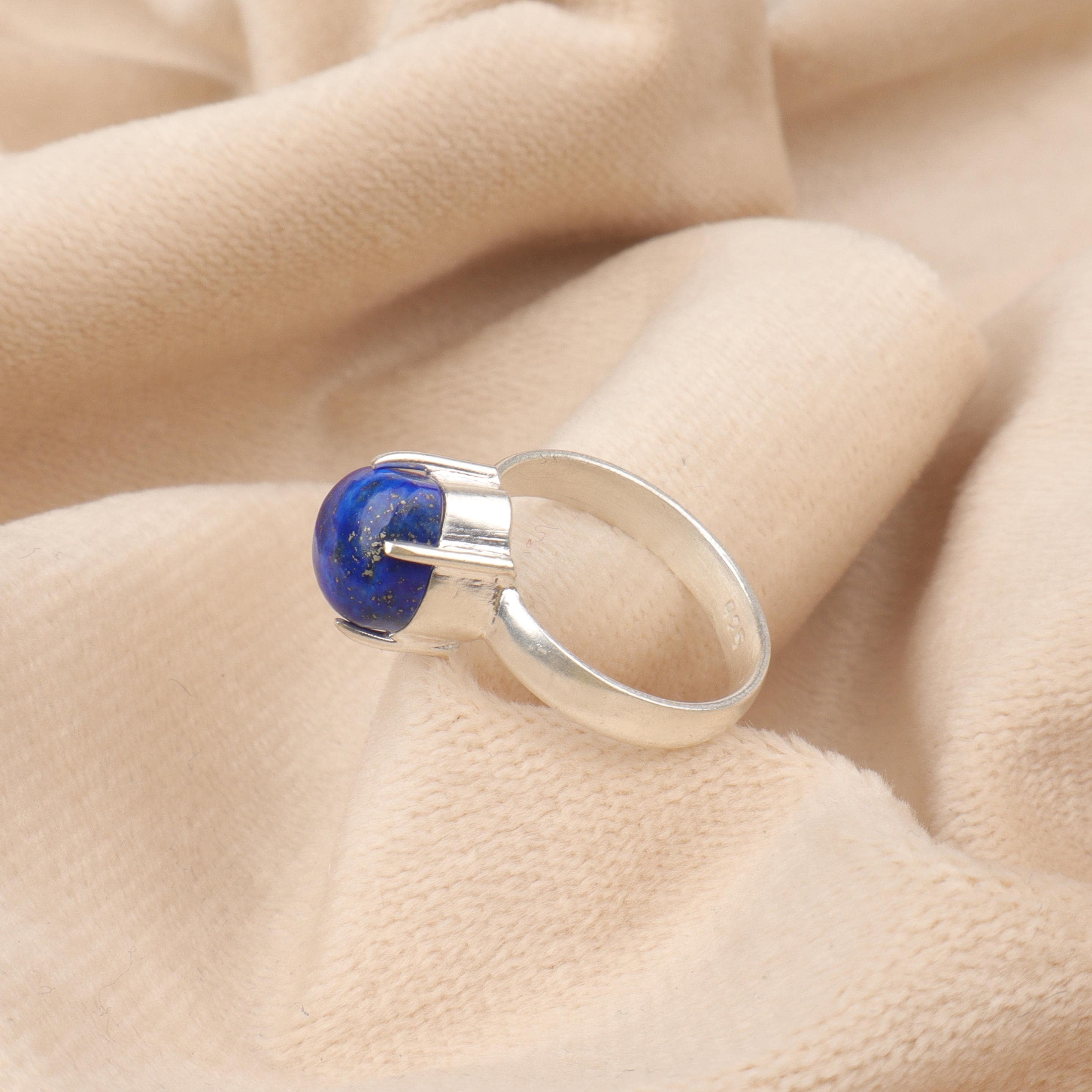 Handmade Lapis Lazuli Ring: 925 Sterling Silver Blue Gemstone Jewelry