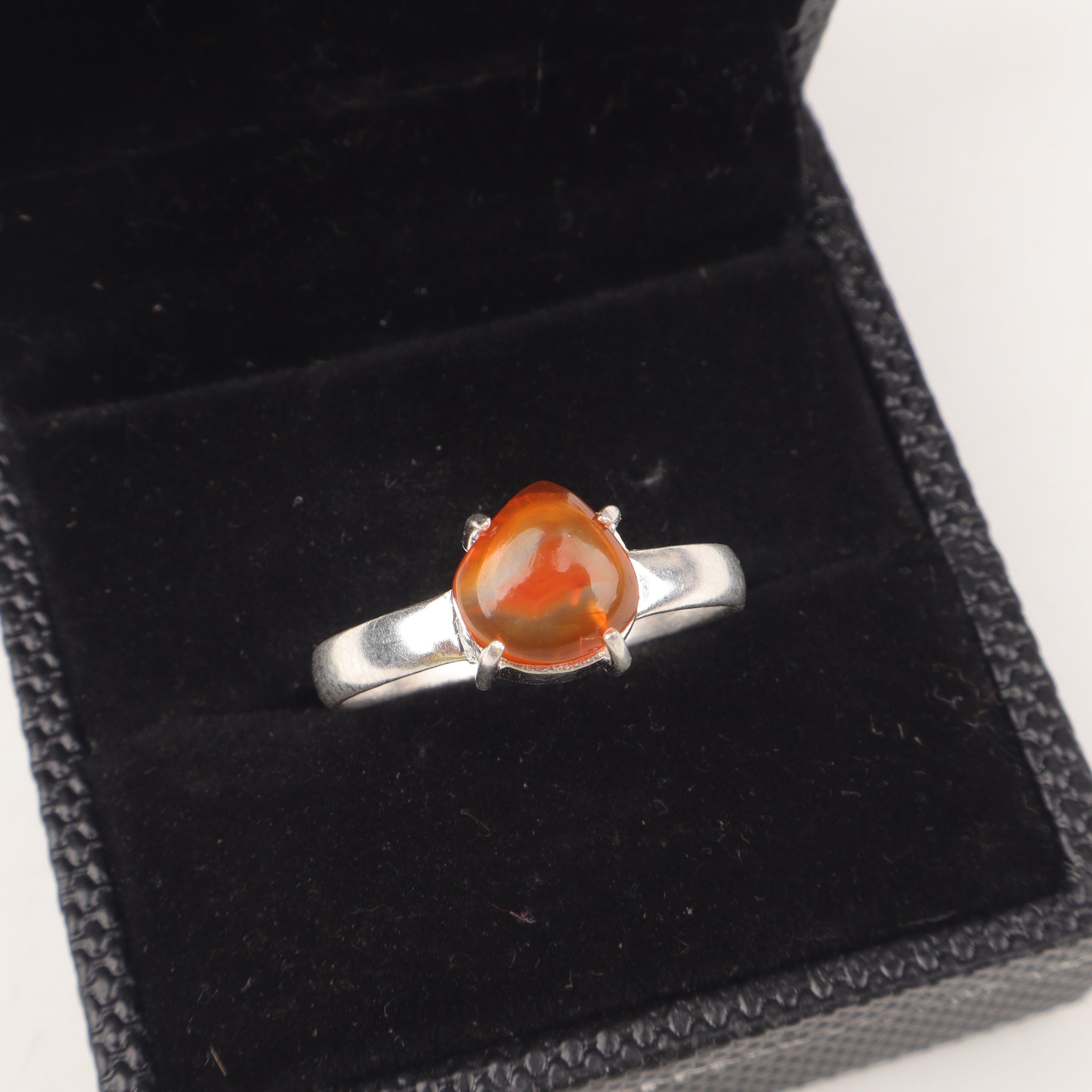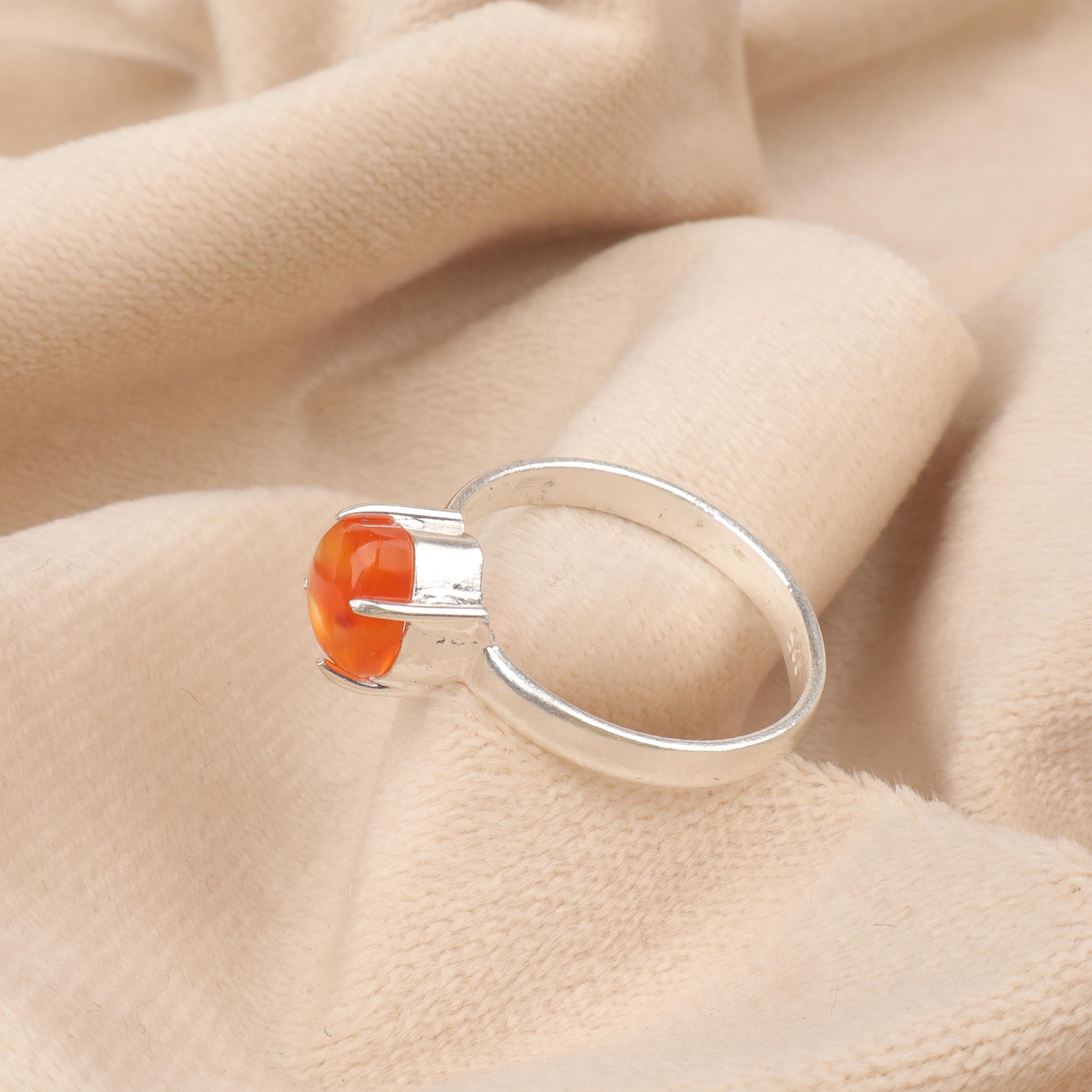 Handmade Carnelian Ring: 925 Sterling Silver Orange Gemstone Jewelry