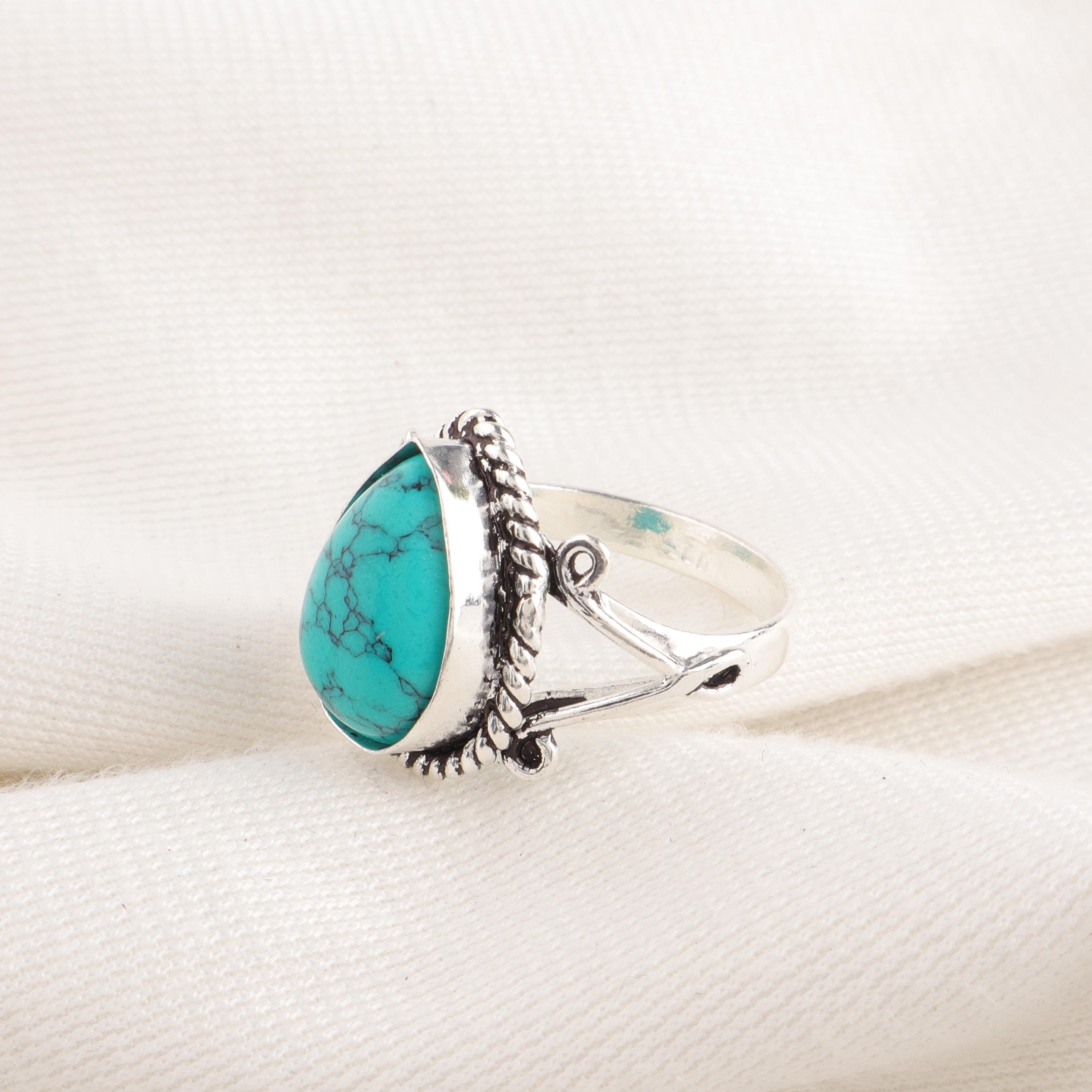Blue Turquoise Ring Blue Turquoise 925 Sterling Silver Ring Handmade Blue Turquoise Gemstone Jewelry Blue Color Statement Ring Everyday Ring