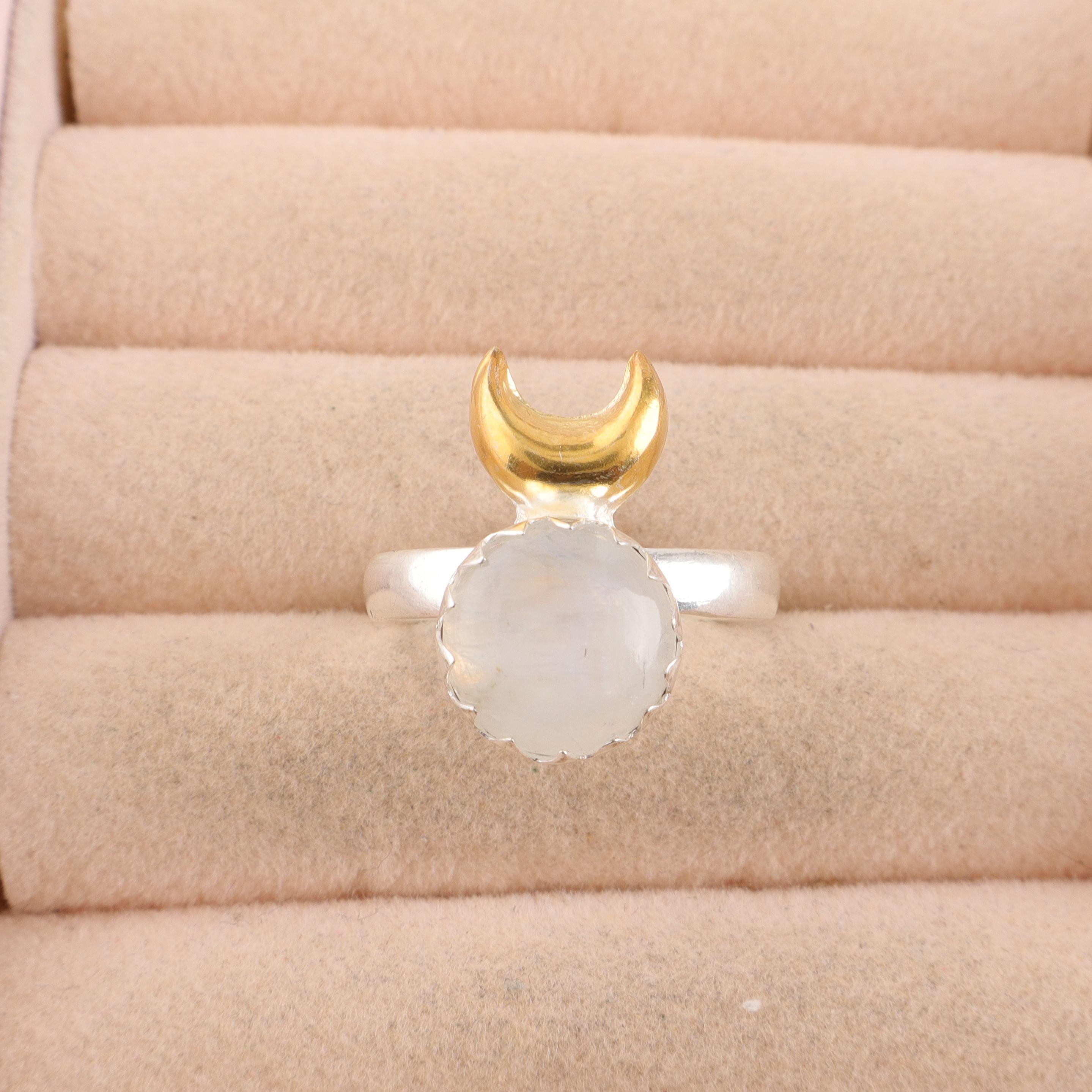Handmade Rainbow Moonstone Ring: 925 Sterling Silver White Gemstone Jewelry