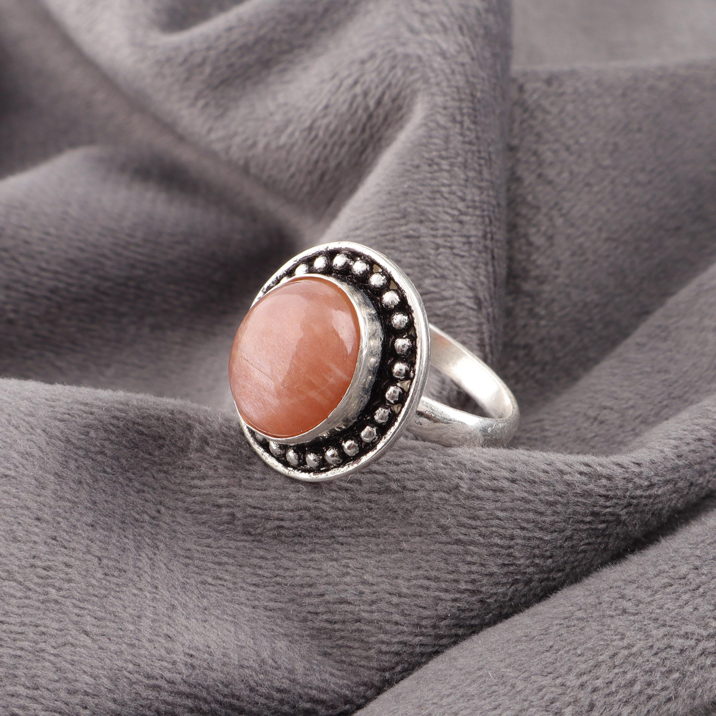 Peach Moonstone Ring Peach Moonstone 925 Sterling Silver Ring Handmade Peach Moonstone Gemstone Jewelry White Color Statement Ring Everyday Ring