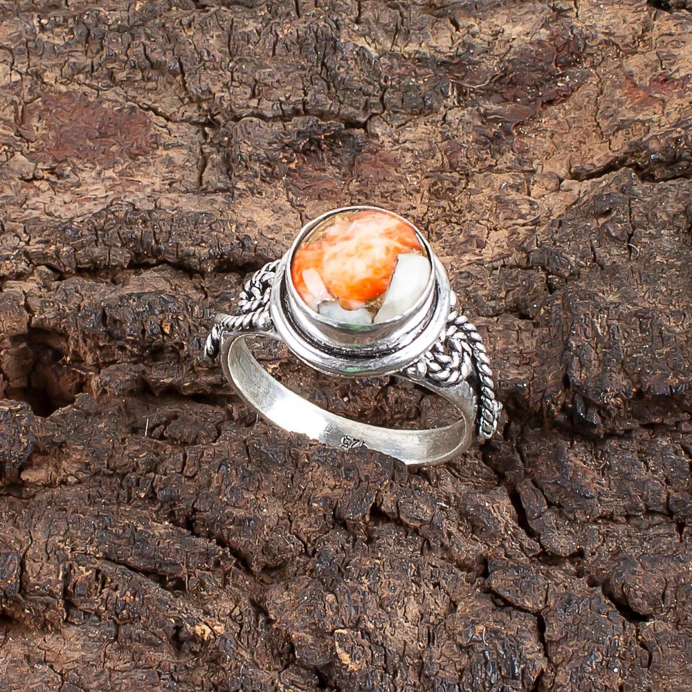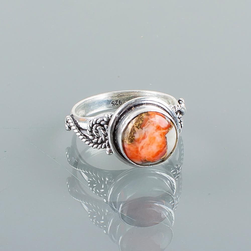 Handmade Orange Copper Turquoise Ring: 925 Sterling Silver Orange Gemstone Jewelry