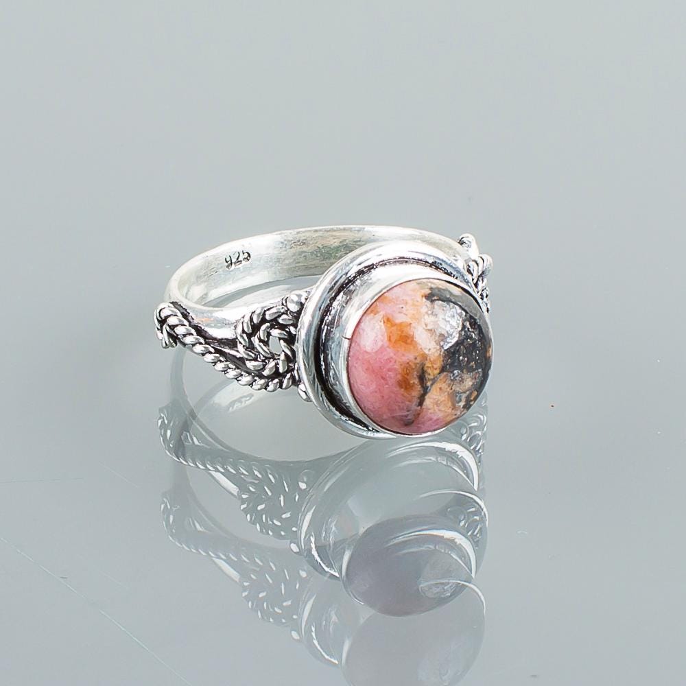 Rhodonite Ring Rhodonite 925 Sterling Silver Ring Handmade Rhodonite Gemstone Jewelry Multi Color Statement Ring Everyday Ring