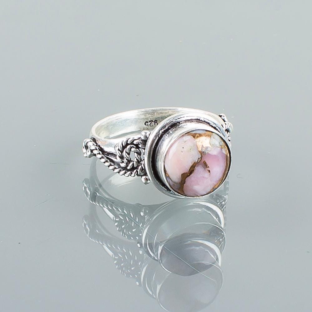 Handmade Pink Opal Turquoise Ring: 925 Sterling Silver pink Gemstone Jewelry