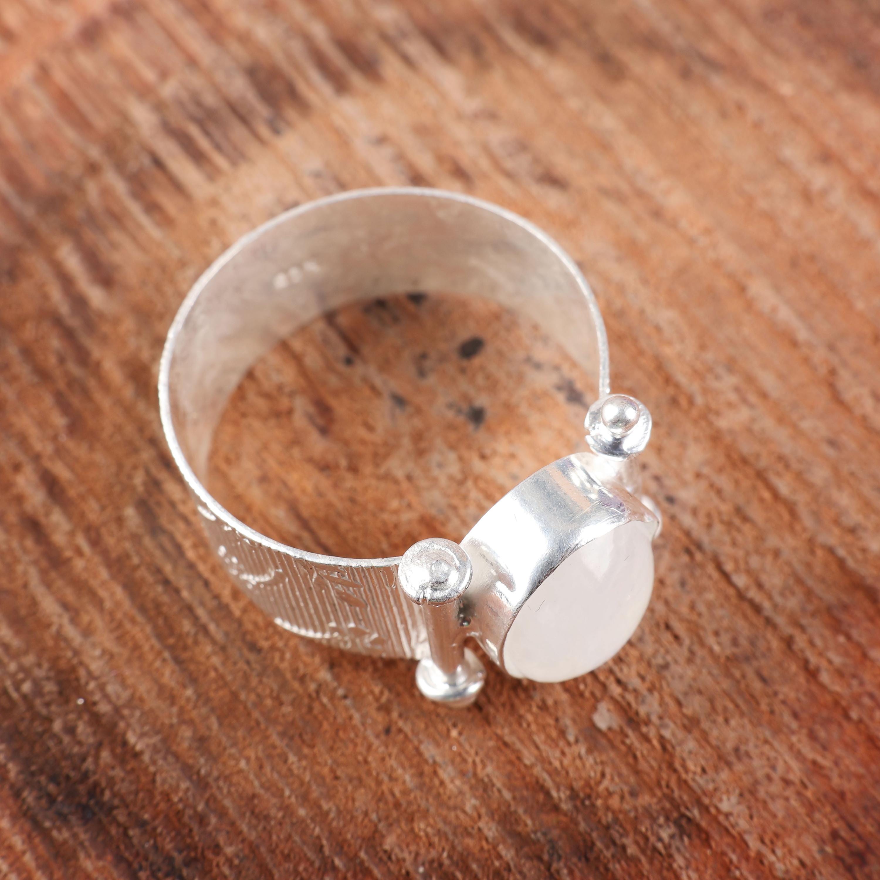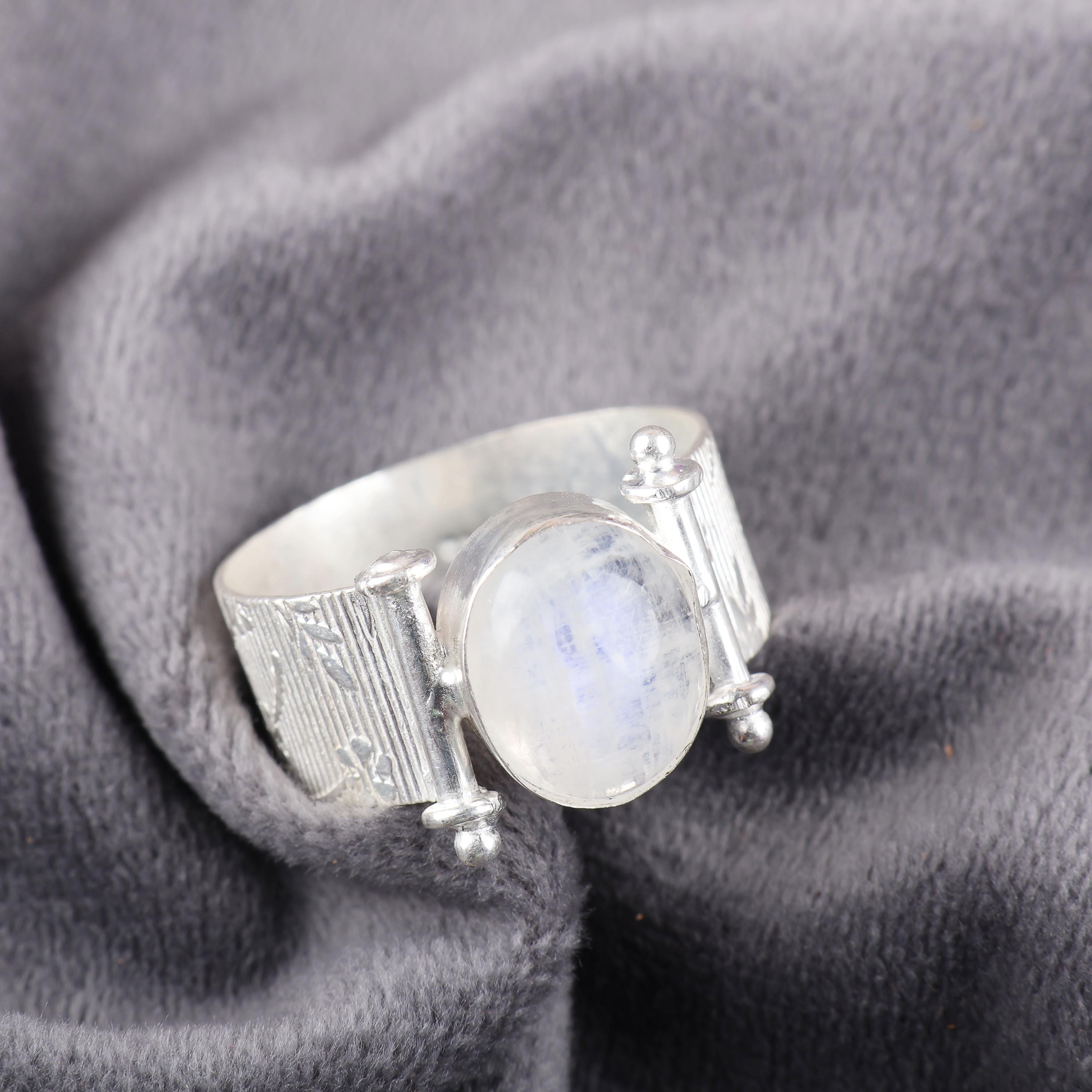 Handmade Rainbow Moonstone Ring: 925 Sterling Silver White Gemstone Jewelry