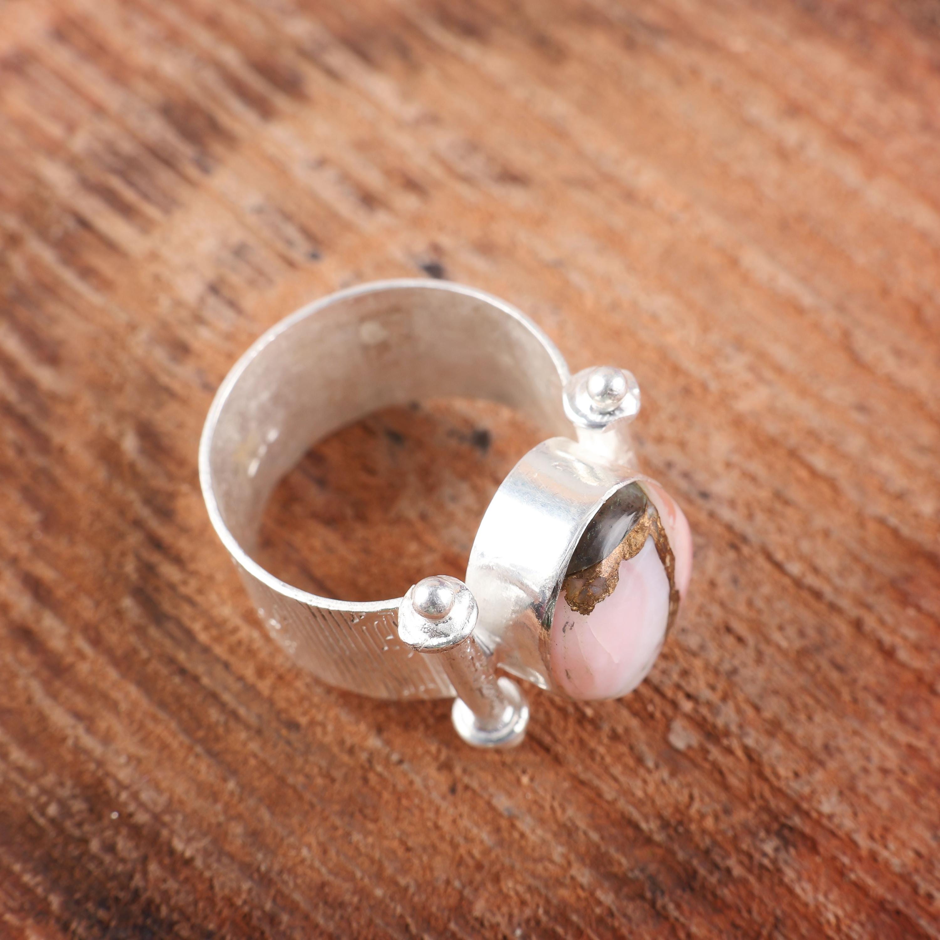 Handmade Pink Opal Turquoise Ring: 925 Sterling Silver pink Gemstone Jewelry