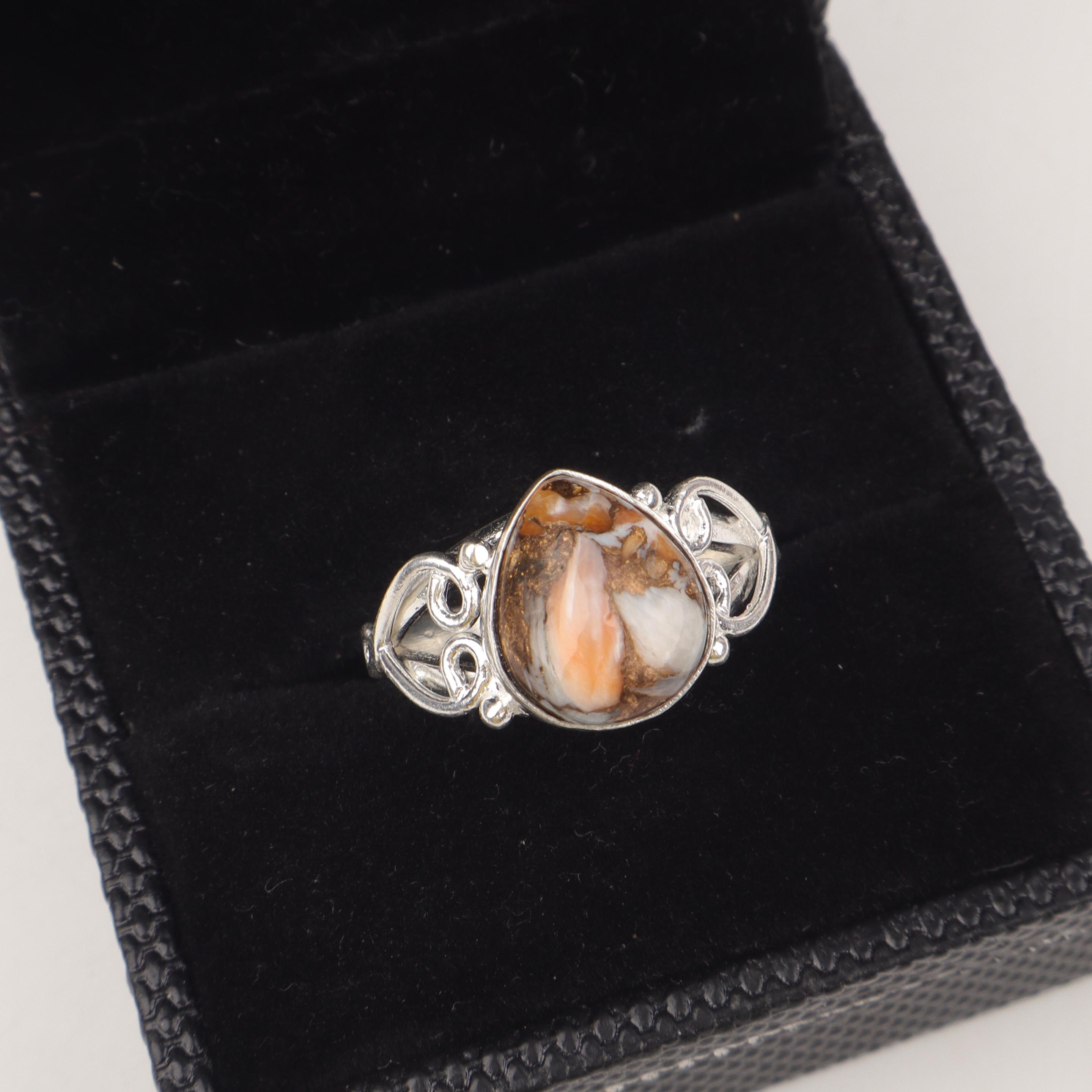 Handmade Orange Copper Turquoise Ring: 925 Sterling Silver Orange Gemstone Jewelry