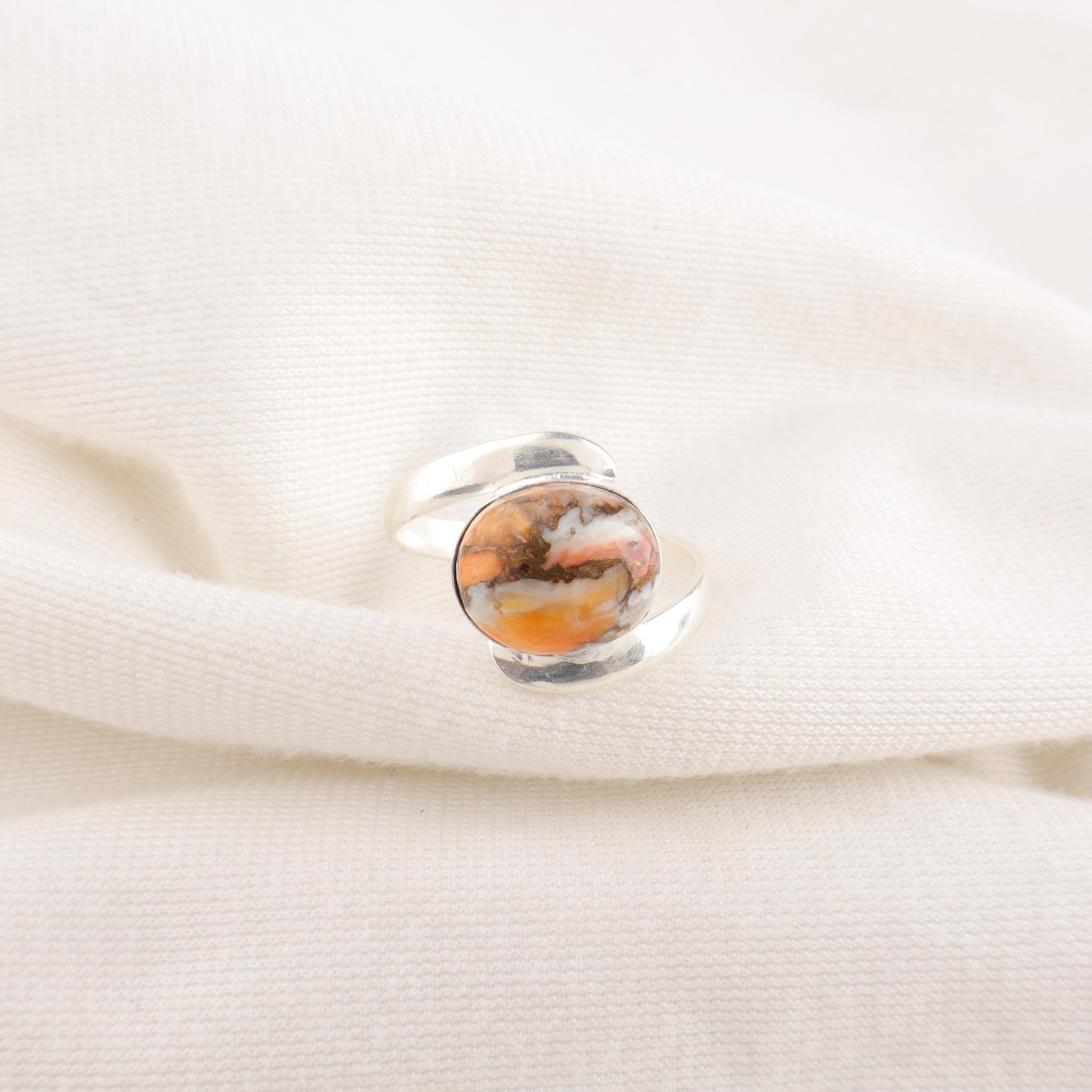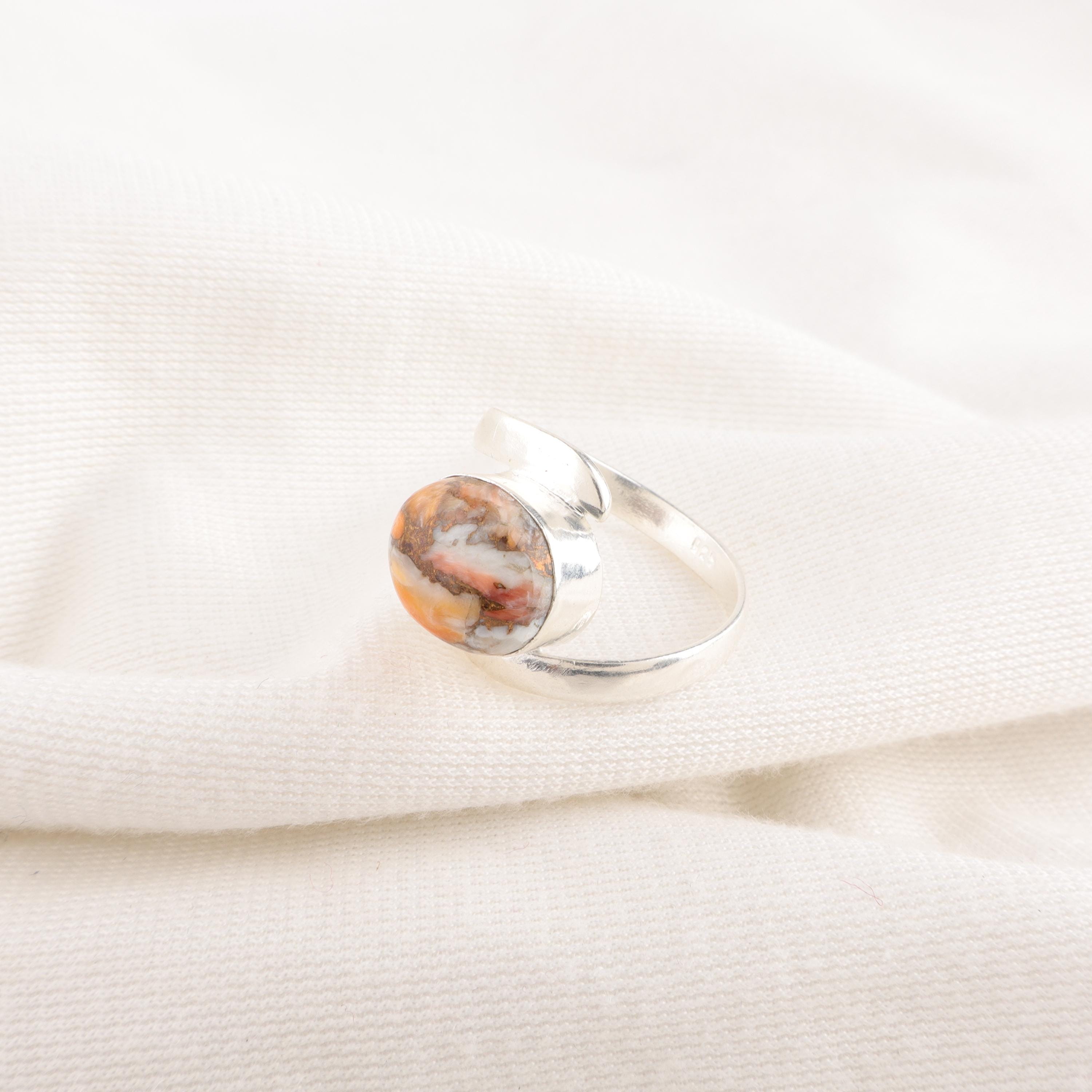 Handmade Orange Copper Turquoise Ring: 925 Sterling Silver Orange Gemstone Jewelry