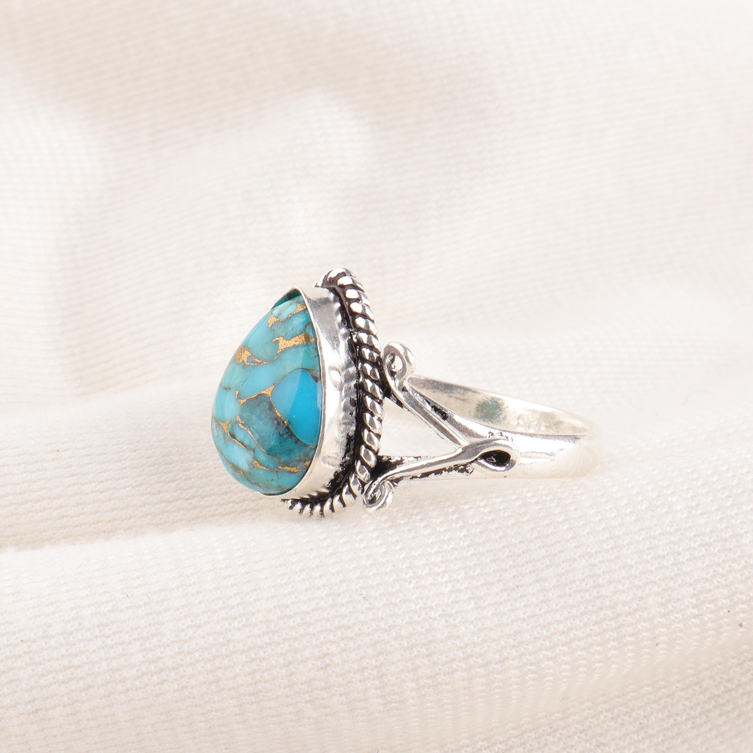 Copper Turquoise Ring Copper Turquoise 925 Sterling Silver Ring Handmade Copper Turquoise Gemstone Jewelry Blue Color Statement Ring Everyday Ring
