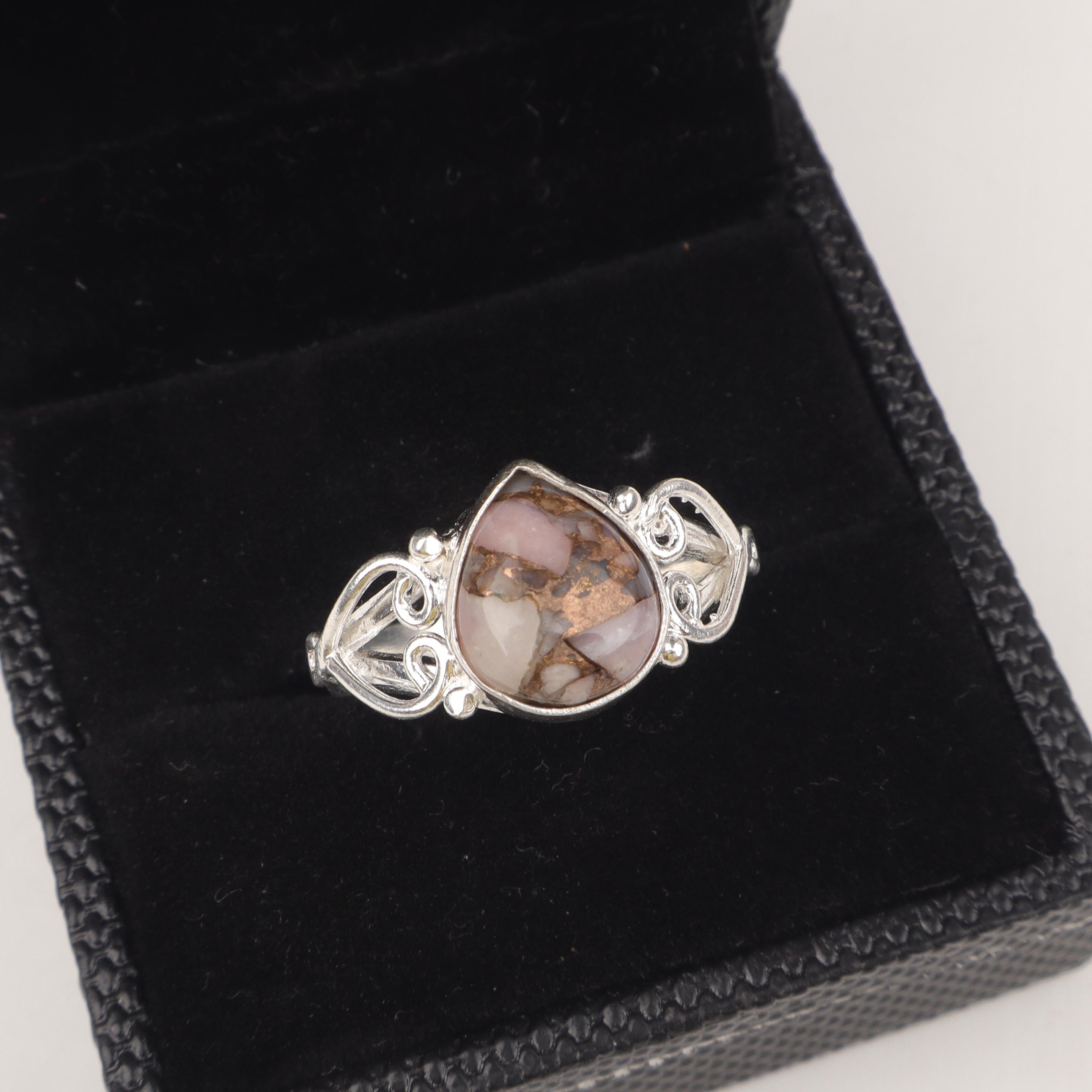 Handmade Pink Opal Turquoise Ring: 925 Sterling Silver pink Gemstone Jewelry