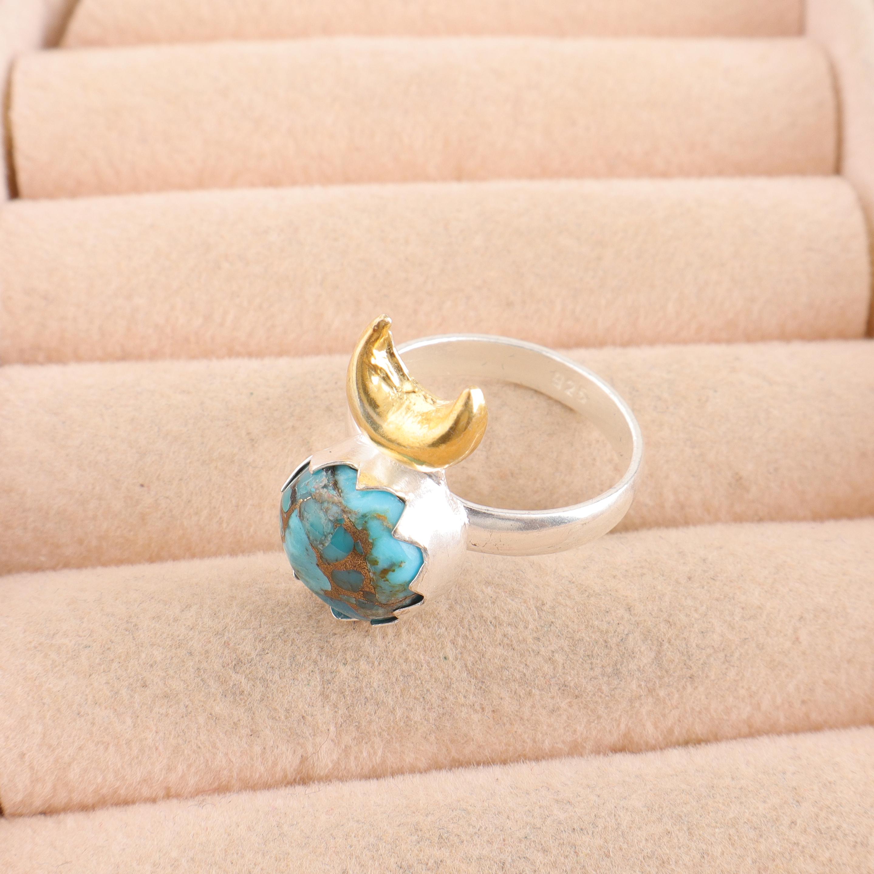 Copper Turquoise Ring Copper Turquoise 925 Sterling Silver Ring Handmade Copper Turquoise Gemstone Jewelry Blue Color Statement Ring Everyday Ring