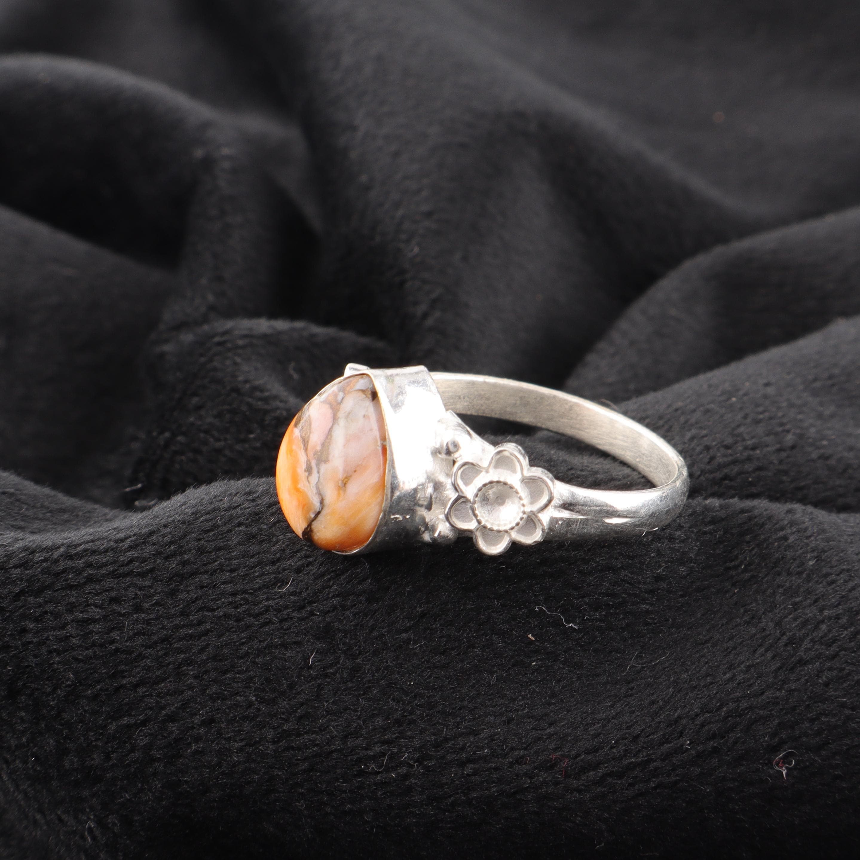 Handmade Orange Copper Turquoise Ring: 925 Sterling Silver Orange Gemstone Jewelry