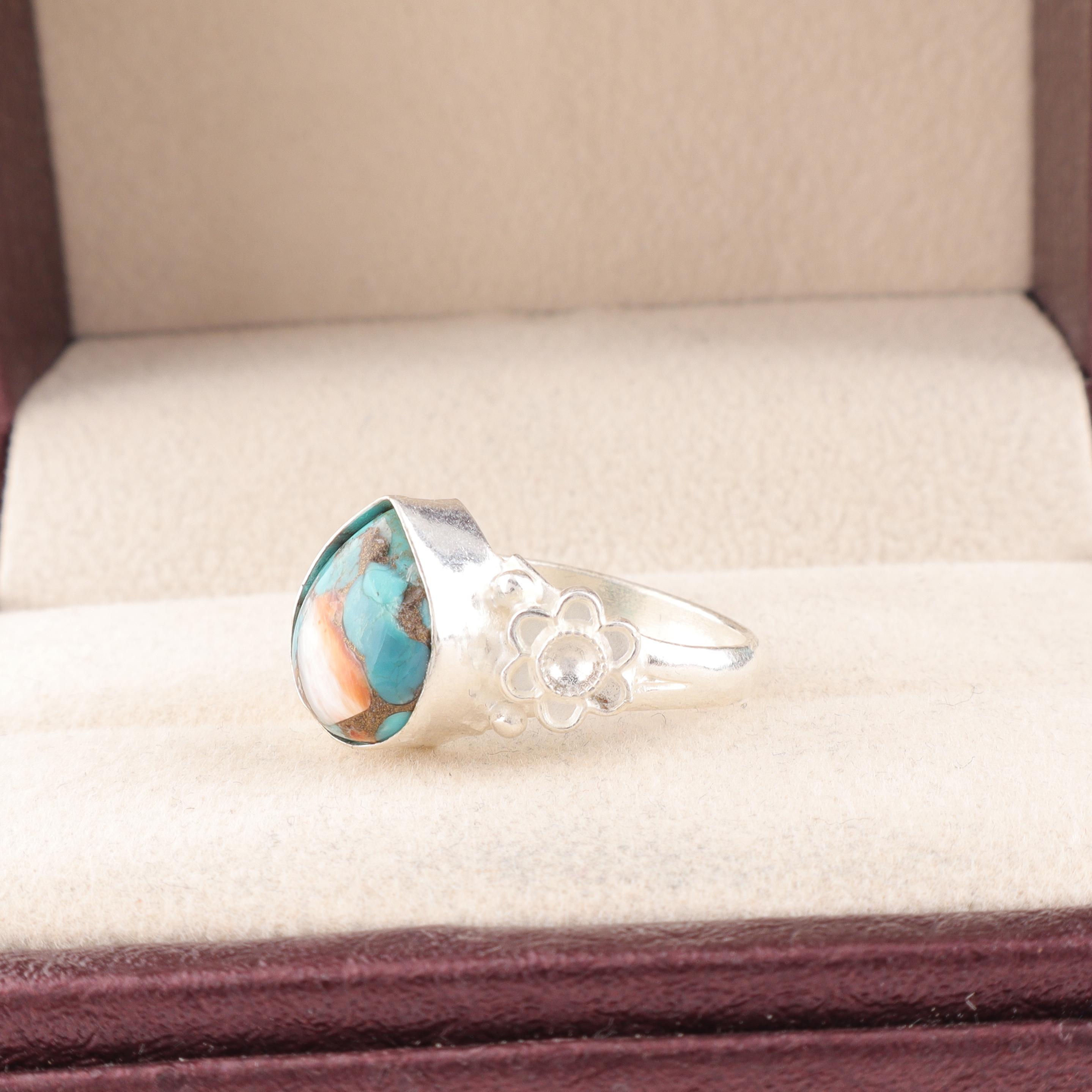 Spiny Oyster Ring Spiny Oyster 925 Sterling Silver Ring Handmade Spiny Oyster Gemstone Jewelry Blue Color Statement Ring Everyday Ring