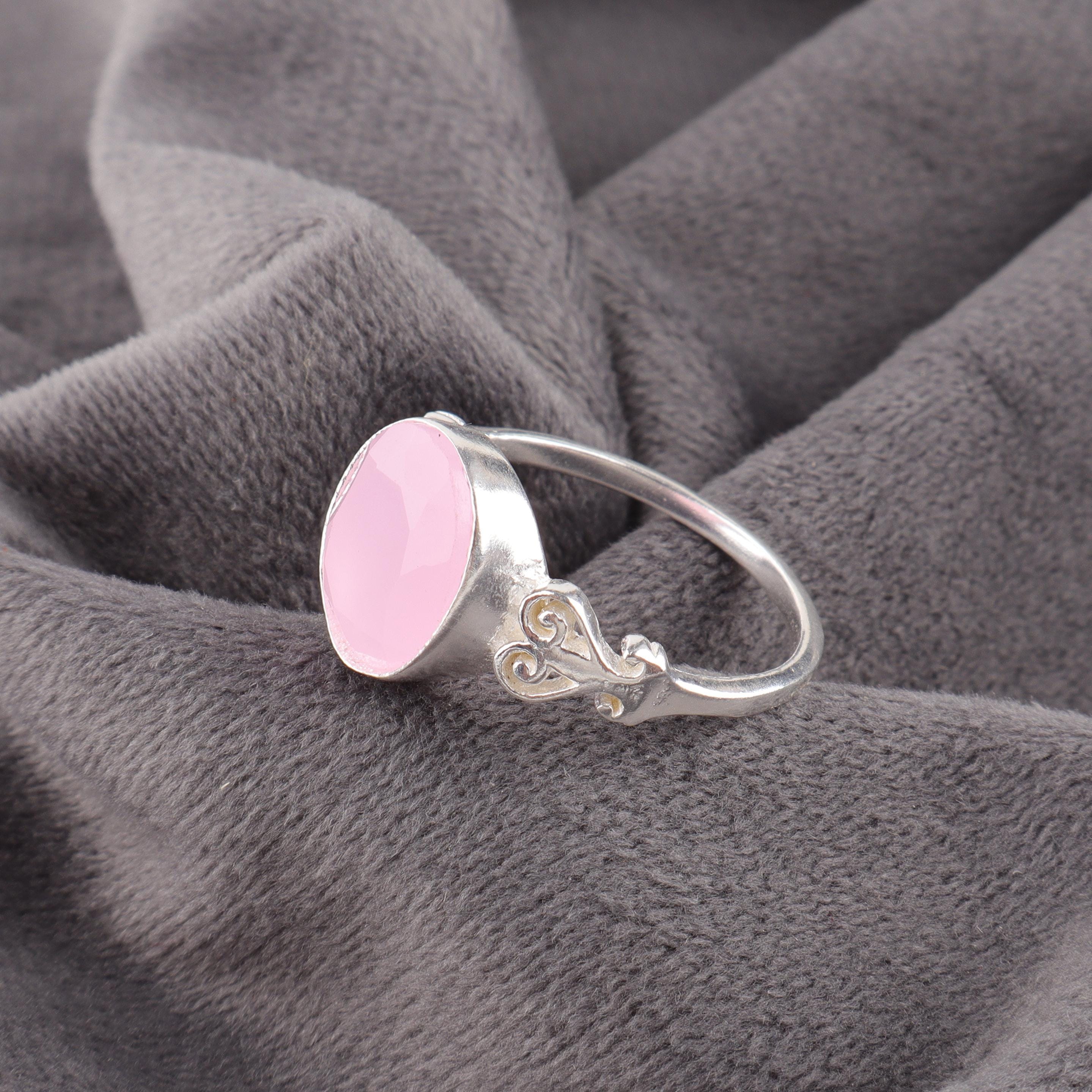 Handmade Rose Chalcedony Ring: 925 Sterling Silver Pink Gemstone Jewelry