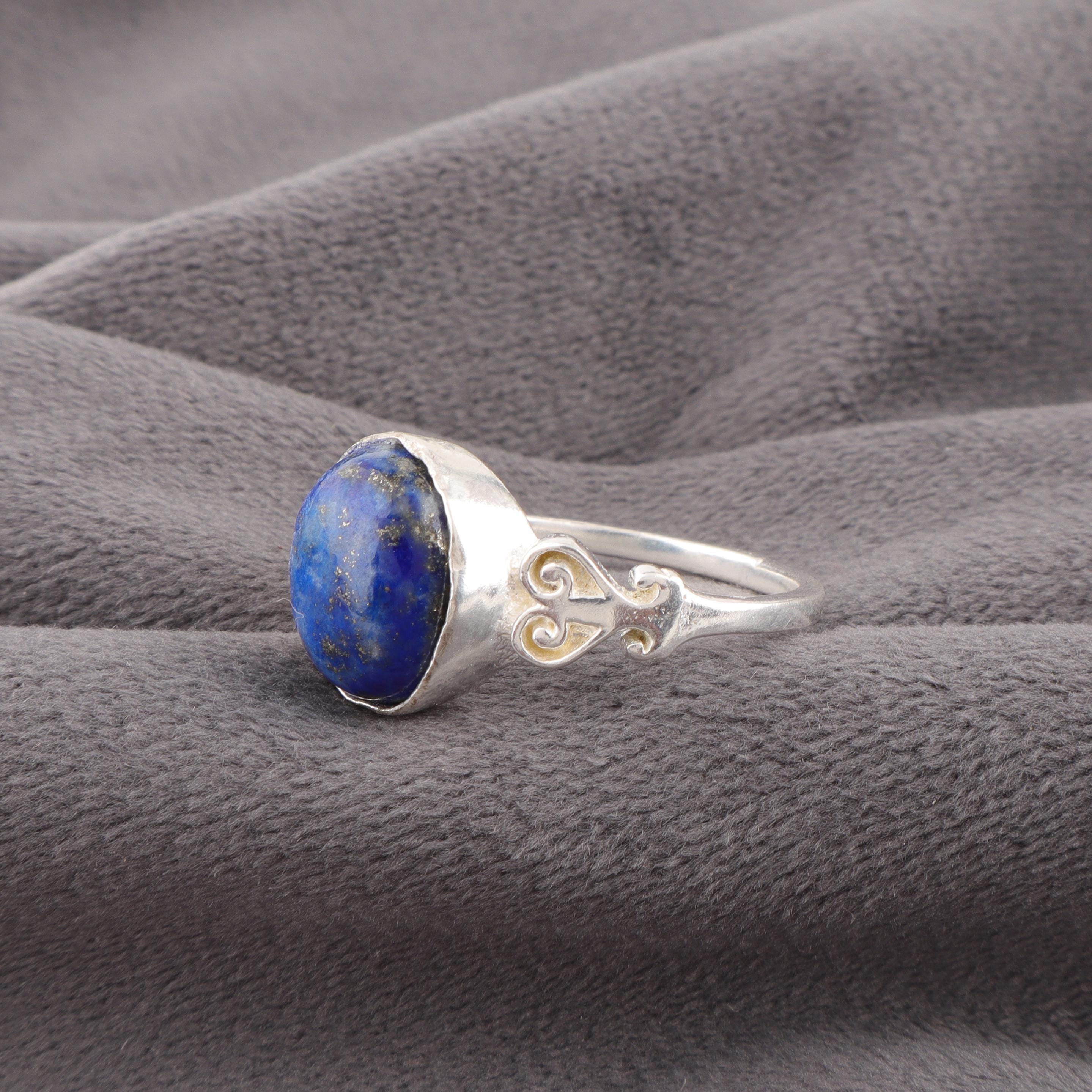 Handmade Lapis Lazuli Ring: 925 Sterling Silver Blue Gemstone Jewelry