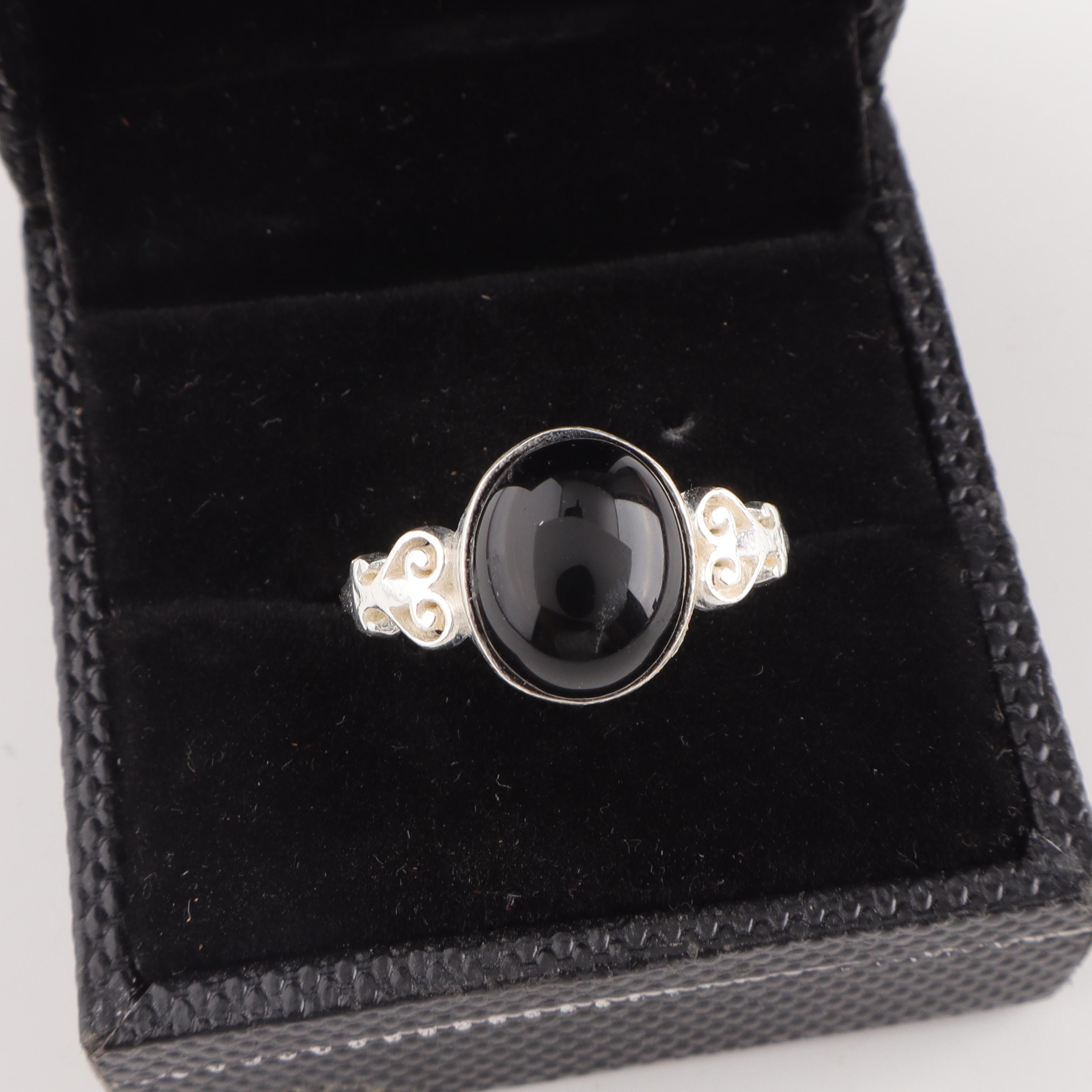 Handmade Black Tourmaline Ring: 925 Sterling Silver Black Gemstone Jewelry