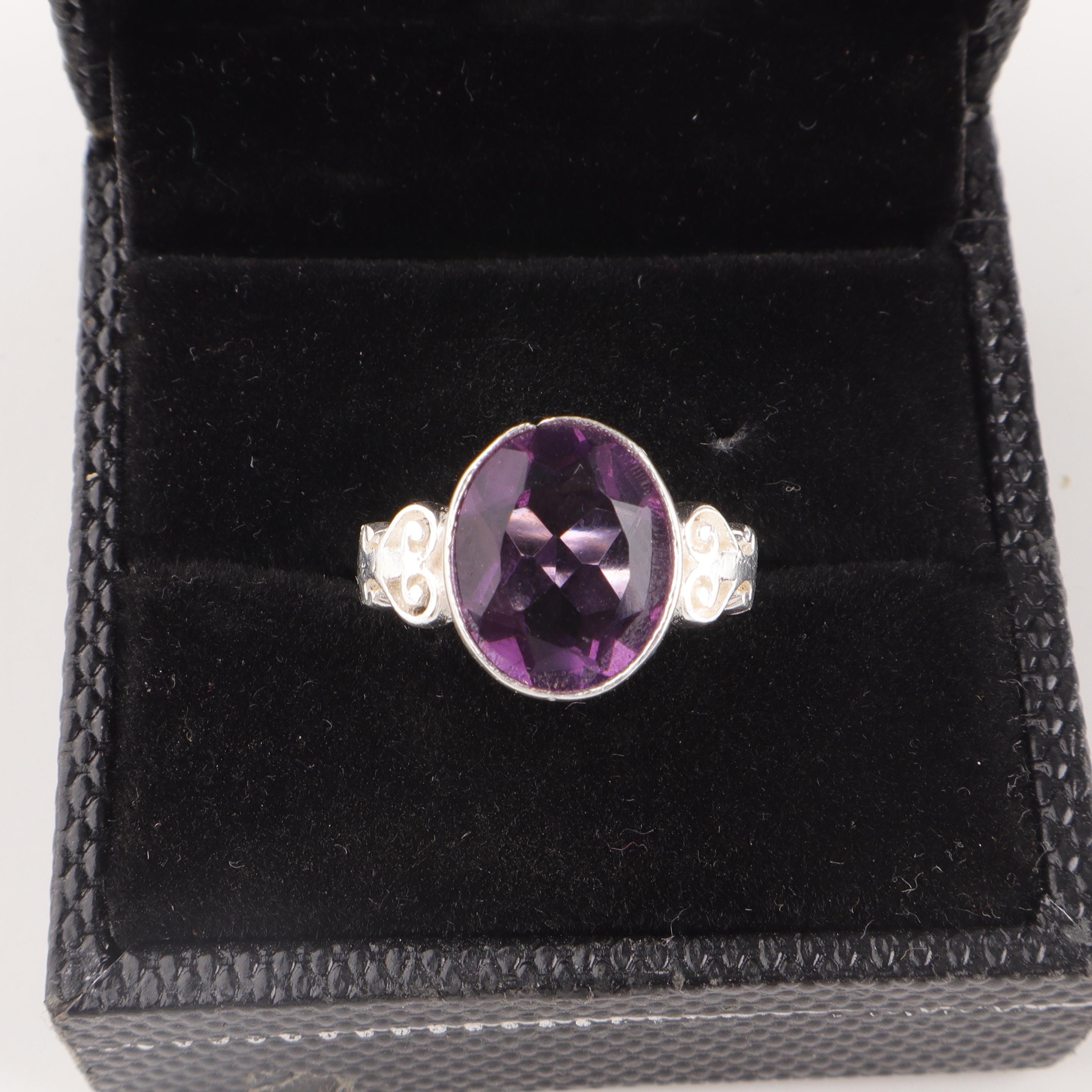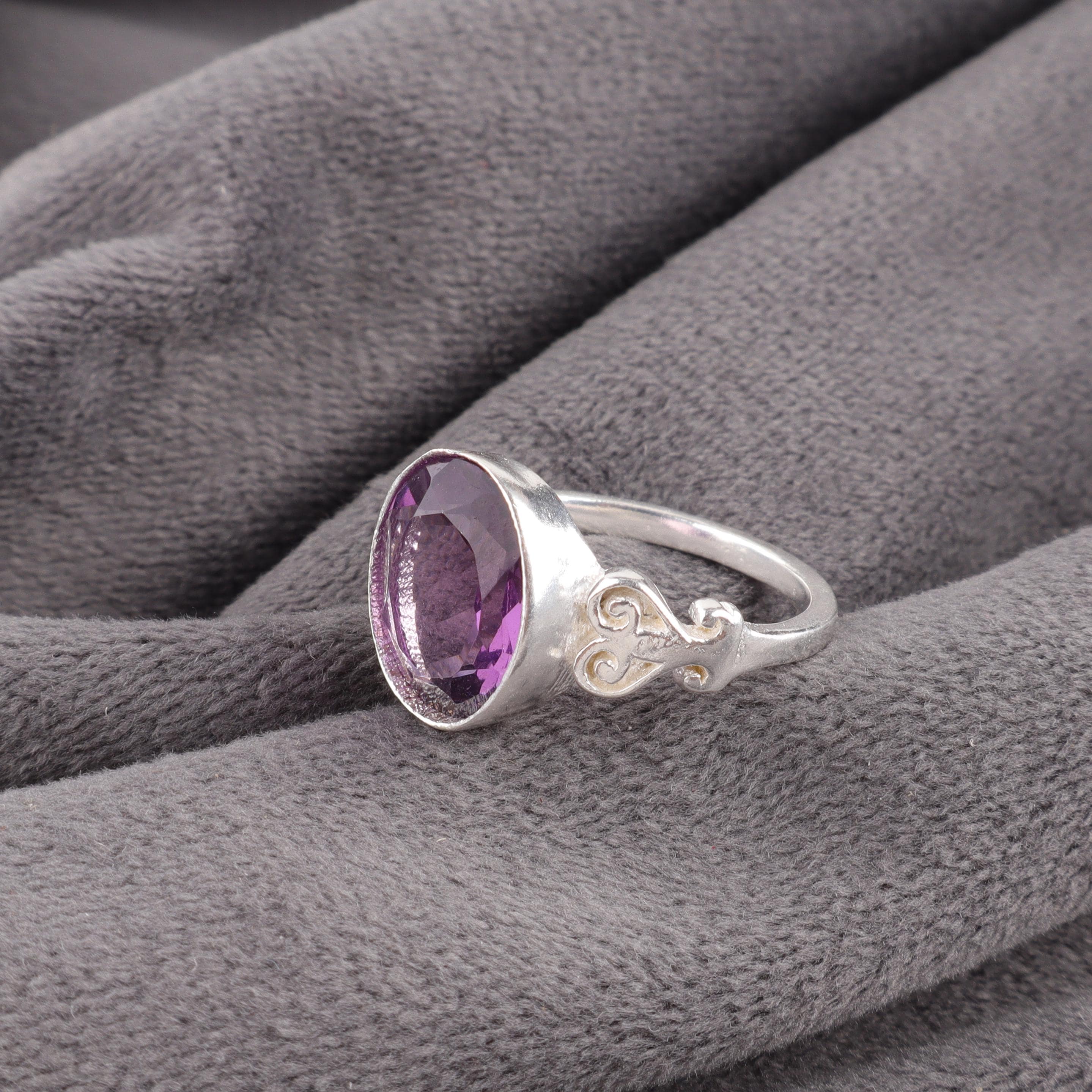 Handmade Amethyst Ring: 925 Sterling Silver Purple Gemstone Jewelry