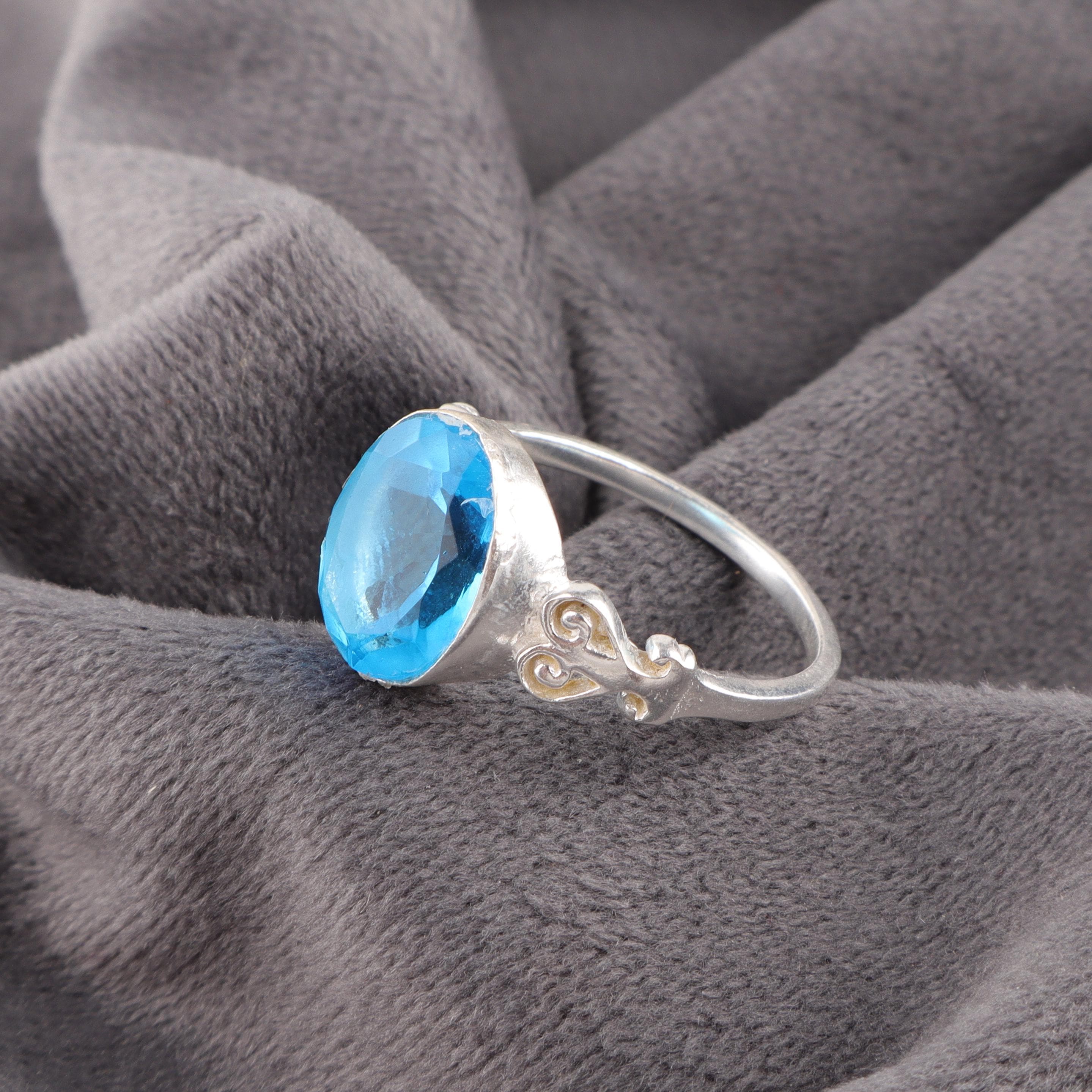 Swiss Blue Topaz Ring Swiss Blue Topaz 925 Sterling Silver Ring Handmade Swiss Blue Topaz Gemstone Jewelry Blue Color Statement Ring Everyday Ring